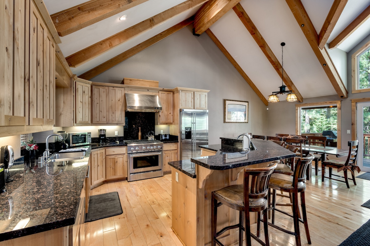 Bubbelbad, theater, pooltafel, airhockey, pingpong, fietsen, sneeuwschoenen, Tesla-oplader, schommelset... Het huis is modern en leuk. Waar anders vind je een kano kroonluchter? Geweldige locatie grenzend bosgebied. Wandel of fiets over de eindeloze paden langs de Truckee-rivier. Op een paar minuten rijden van de casino 's, het meer en het hemelse skigebied. Drie grote slaapkamers, plus veel extra bonuskamers voor kantoor- of leeshoekruimte. Bijna 4000 vierkante voet, gerenoveerd in 2020.