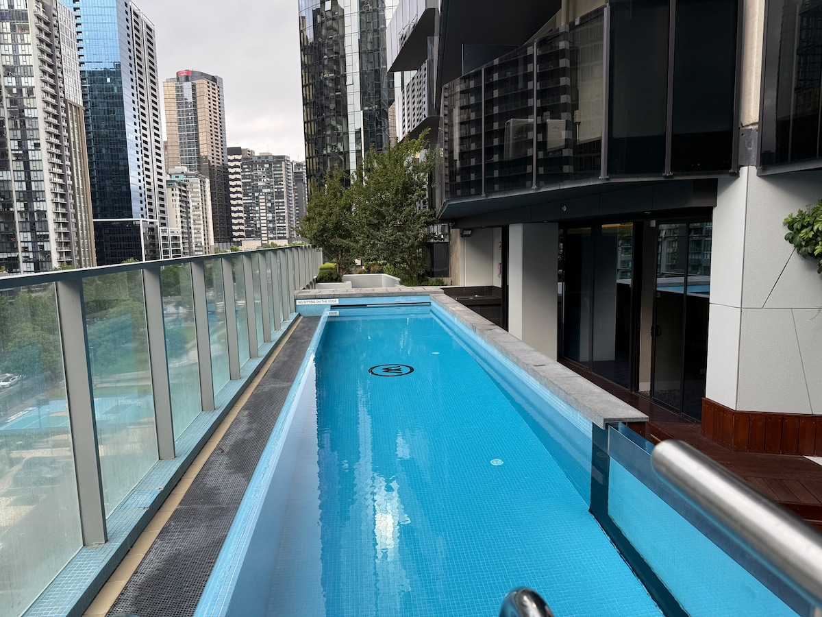 Ervaar de belichaming van luxe wonen in dit prachtige appartement van 65 m2, perfect gelegen in het Parijse uiteinde van Melbourne. Geniet van een adembenemend uitzicht op de stad vanuit het comfort van je privéwoning, compleet met een ruime loungeruimte met een leren chaise longue en een leren bank met drie zitplaatsen. De moderne eettafel biedt plaats aan twee personen, perfect voor intieme bijeenkomsten. Geniet van een marmeren inloopdouche in sluiting en badkamer met LED-make-upverlichting. Het zwembad is het hele jaar door verwarmd en het beste in Melbourne.