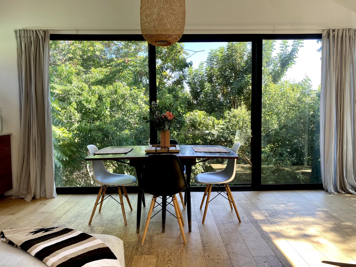 Dit zorgvuldig ontworpen privéhuisje van 450 m ² biedt de perfecte oase - een open, luchtige ruimte met gewelfde plafonds en veel daglicht. Geniet van het 110-inch projectiescherm met surroundgeluid voor een filmische ervaring 's avonds of een glas wijn bij uw eigen vuurplaats. Een heiligdom inderdaad! INDOORS-- Nieuwbouw--het is een 450 sq. ft. plak van de hemel met: •Gewelfde plafonds en twee dakramen (met op afstand bedienbare tinten) •Full-size keuken met moderne apparatuur, waaronder LG koelkast, broodrooster en Keurig koffiezetapparaat •Mediacentrum met een ultramodern geluidssysteem, Bluetooth-mogelijkheid, filmprojector en 110" filmscherm (Hello STAR WARS!) •Queen-size Murphy bed met een comfortabele hybride matras gemaakt van traagschuim en veerspoelen, een kast met veel kastruimte en puckverlichting (ideaal voor een beetje laat in de avond lezen) •Gezellig ontbijthoekje met comfortabele linnenkussens •Schuurdeur opent naar een ruime badkamer met: marmeren vloer - frameloze glazen douchedeuren - ruime volledig gevulde, inloopdouche met marmeren bank - grote douchekop - ruime ijdelheid •Vervoerdeuren die kunnen openen om te genieten van de pracht van de dag OUTDOORS - Een resortachtige achtertuin wacht op u met: •Nieuw gebouwd zwembad (38'Lx9'W) •Mooie en serene landschapsarchitectuur •Prachtige sfeerverlichting •Vuurplaats •Eettafel •Luxe banken chaise ligstoel •2 chaise ligstoelen Het huisje ligt op enige afstand achter het hoofdgebouw, zodat u kunt genieten van veel privacy. De achtertuin is van jou om te gebruiken tijdens je verblijf, inclusief de eethoek buiten, buitenbank, chaise ligstoelen, vuurplaats en zwembad. Ontspan EN geniet!! CHECK IN: 15.00 uur CHECK OUT: 11 uur PARKEREN: Wij bieden parkeervergunningen (dag/nacht) voor u bij aankomst. Als u langer dan één nacht verblijft, moet u er rekening mee houden dat u de dagvergunning elke dag moet omwisselen. Er is meestal voldoende parkeergelegenheid, dus het vinden van een ruimte zou geen probleem moeten zijn. DISCLAIMERS: (1) ER IS GEEN BADMEESTER IN DIENST DUS ZWEMMEN IS OP EIGEN RISICO. (2) DUIKEN IN HET ZWEMBAD IS NIET TOEGESTAAN. (3) WIJ VERWARMEN HET ZWEMBAD NIET. IN DE WARMERE MAANDEN BLIJFT HET ZWEMBAD ROND DE 76-80 GRADEN. HOUD ER ECHTER REKENING MEE DAT HET NATUURLIJK KOELER WORDT TIJDENS KOUDER WEER (65-68 GRADEN EN LAGER). (4) PARKEREN OP STRAAT IS OP EIGEN RISICO. HOEWEL WE NOOIT PROBLEMEN HEBBEN ONDERVONDEN, KUNNEN WE DE VEILIGHEID VAN UW AUTO NIET GARANDEREN. (5) ALS U VERGEET OM DE PARKEERVERGUNNINGEN IN UW AUTO TE PLAATSEN OF VERKEERD PLAATST EN EEN TICKET ONTVANGT VAN DE STAD PASADENA, BENT U VERANTWOORDELIJK VOOR HET BETALEN VAN DAT TICKET. We werken vanuit het idee dat, als je weggaat of op zakenreis bent, je waarschijnlijk verlangt naar wat quality time alleen en privacy. We respecteren dat terwijl je hier bent. Natuurlijk houden we van een goed gesprek, maar we laten het helemaal aan jou over. Als je iets nodig hebt, stuur ons dan gewoon een sms. We zijn meestal beschikbaar tot 23.00 uur. Als we om welke reden dan ook niet bereikbaar zijn, laat dan gerust een bericht achter en we nemen zo snel mogelijk contact met je op. Natuurlijk, in geval van nood of om toegang te krijgen tot het pand, zijn wij 24/7 beschikbaar. Het pension biedt een rustig toevluchtsoord dicht bij de beschaving. De metro en een verscheidenheid aan restaurants zijn gemakkelijk te voet te bereiken. Downtown Pasadena is een korte fietstocht, gezonde wandeling of korte autorit verwijderd. Pasadena is een prachtige stad met zoveel te zien! We zijn 10 minuten lopen naar het metrostation Lake Gold Line, waar u de Gold Line naar South Pasadena kunt nemen en kunt genieten van de winkels/restaurants van Mission Street, de halte Del Mar kunt nemen waar u kunt genieten van de beroemde Rose Bowl Flea Market (2e zondag van elke maand), de halte Union Square kunt nemen om Olvera Street te ervaren (margaritas, iemand?) of een heerlijke French Dip-sandwich van Phillipe 's. Als het een museum is dat je zoekt, ga dan naar het Memorial Park Station om het Norton Simon Museum te vinden, een van de beste collecties beeldende kunst in de omgeving van Los Angeles. Het centrum van Pasadena met zijn prachtige winkels en restaurants ligt op slechts 5 minuten rijden met de fiets of auto (of, voor degenen onder u die van wat beweging houden, op 30 minuten lopen). We hebben twee schattige honden. Ze hebben echter nooit toegang tot het huisje, dus het is allergeen-/huisdiervrij. Tijdens uw verblijf houden we ze graag in huis en laten ze alleen buiten om hun zaken te doen in de voortuin van het hoofdgebouw. Je hoort misschien af en toe blaffen, omdat ze graag hun hoeve beschermen. Maar waarschijnlijk zul je ze nooit horen, omdat het huisje op een comfortabele afstand ligt. Ze zijn vriendelijk en houden ervan om nieuwe mensen te ontmoeten!