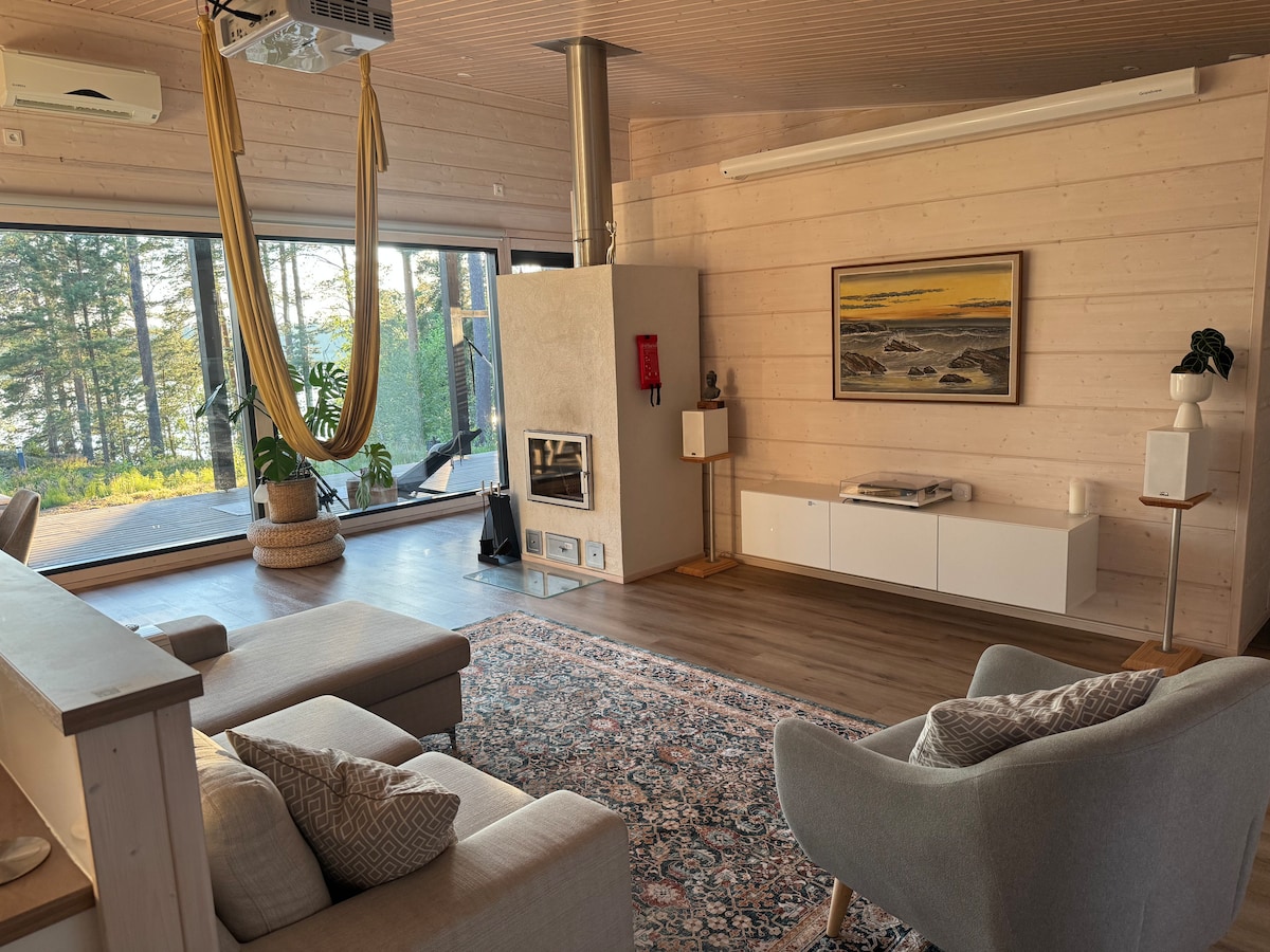 Ontsnap naar een luxe houten huisje in de adembenemende wildernis van Finland, op minder dan drie uur van Helsinki. Deze gezellige oase wordt omgeven door uitgestrekte bossen en sprankelende meren en is de perfecte mix van rustieke charme en modern gemak. Uitgelicht in Meer over reizen, biedt het spa-achtige ontspanning, snelle wifi en een elektrisch bureau voor naadloos werk of vrije tijd. Perfect voor natuurliefhebbers of telewerkers, geniet van de rust van de ongerepte schoonheid van Finland in combinatie met alle comfort van thuis.