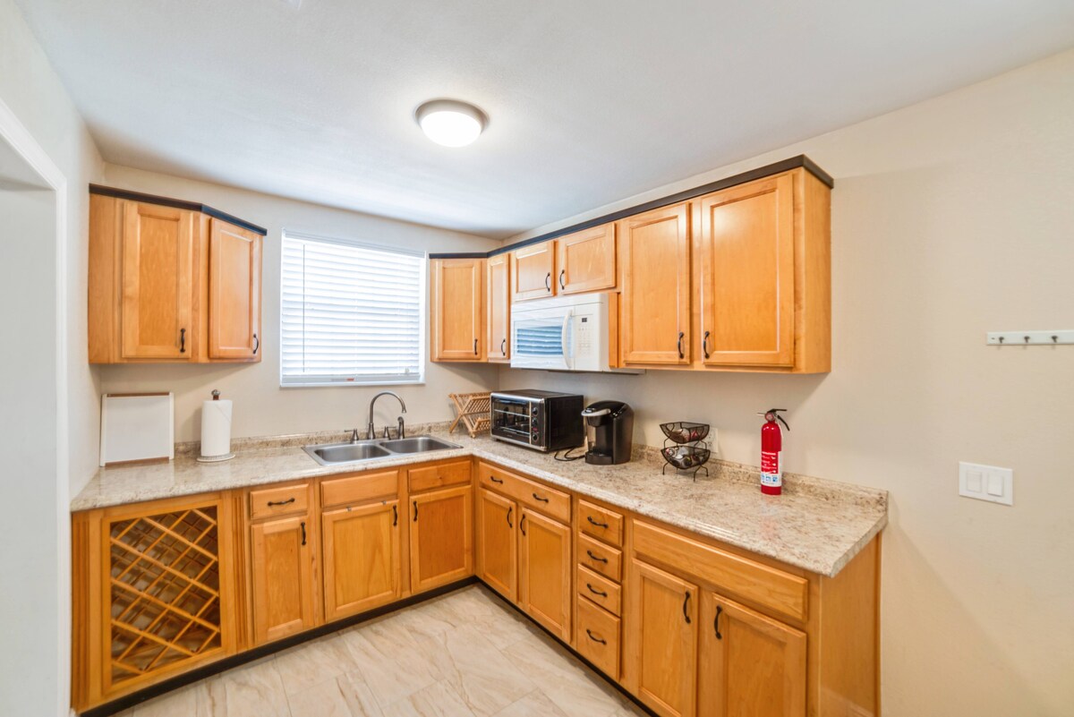 Chique privésuite voor gasten in het hart van North Hyde Park – op slechts 4 minuten van het centrum van Tampa. Geniet van een slaapkamer met queensize bed, een eigen badkamer, een kitchenette en een werkplek in een prachtig ingerichte suite op de eerste verdieping van ons moderne herenhuis. Perfect voor thuiswerkers, langere verblijven en gasten die zowel locatie als comfort willen.