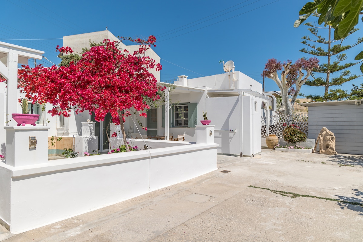 Schattige studio 40m² met een zorgeloos gevoel. Kingsize bed, keuken, eettafel en buitenterras in de tuin, met uitzicht op de haven van Parikia en de zonsondergang. Wifi, satelliet-tv, airconditioning in alle kamers en badkamer met douche. De studio komt uit op een eigen tuinterras. Wij heten u van harte welkom met vers fruit, wijn, ‘souma’ (onze lokale drank) en ontbijtartikelen. Gemeenschappelijke tuin met zithoeken onder de bomen Het strand ligt op slechts 700 meter afstand! Gratis havenvervoer bij aankomst/vertrek op verzoek.