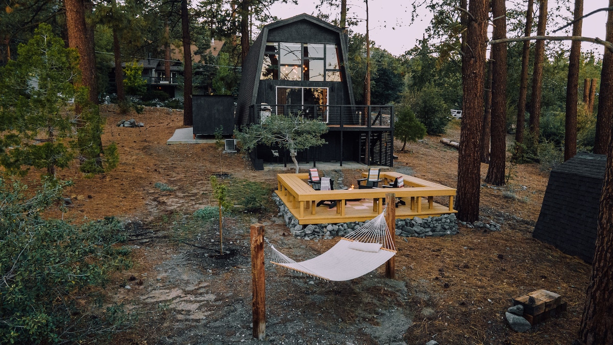 Deze concepthut ligt bovenop een miniatuurberg met een weids uitzicht dat zich uitstrekt van de Stille Oceaan tot de top van San Gorgonio (hoogste berg in SoCal) en is als een gedesintegreerd huis verspreid over een gebied van ongeveer 1 hectare. Het interieur bestaat uit een queensize bed met een groot dakraam om naar de sterren te kijken, evenals een loungeruimte met een oversized leren bank. Het hoogtepunt van de hut is de buitenruimte. Het beschikt over een cabana met een dagbed, zitzak, schommelstoelen, een keuken, enz.