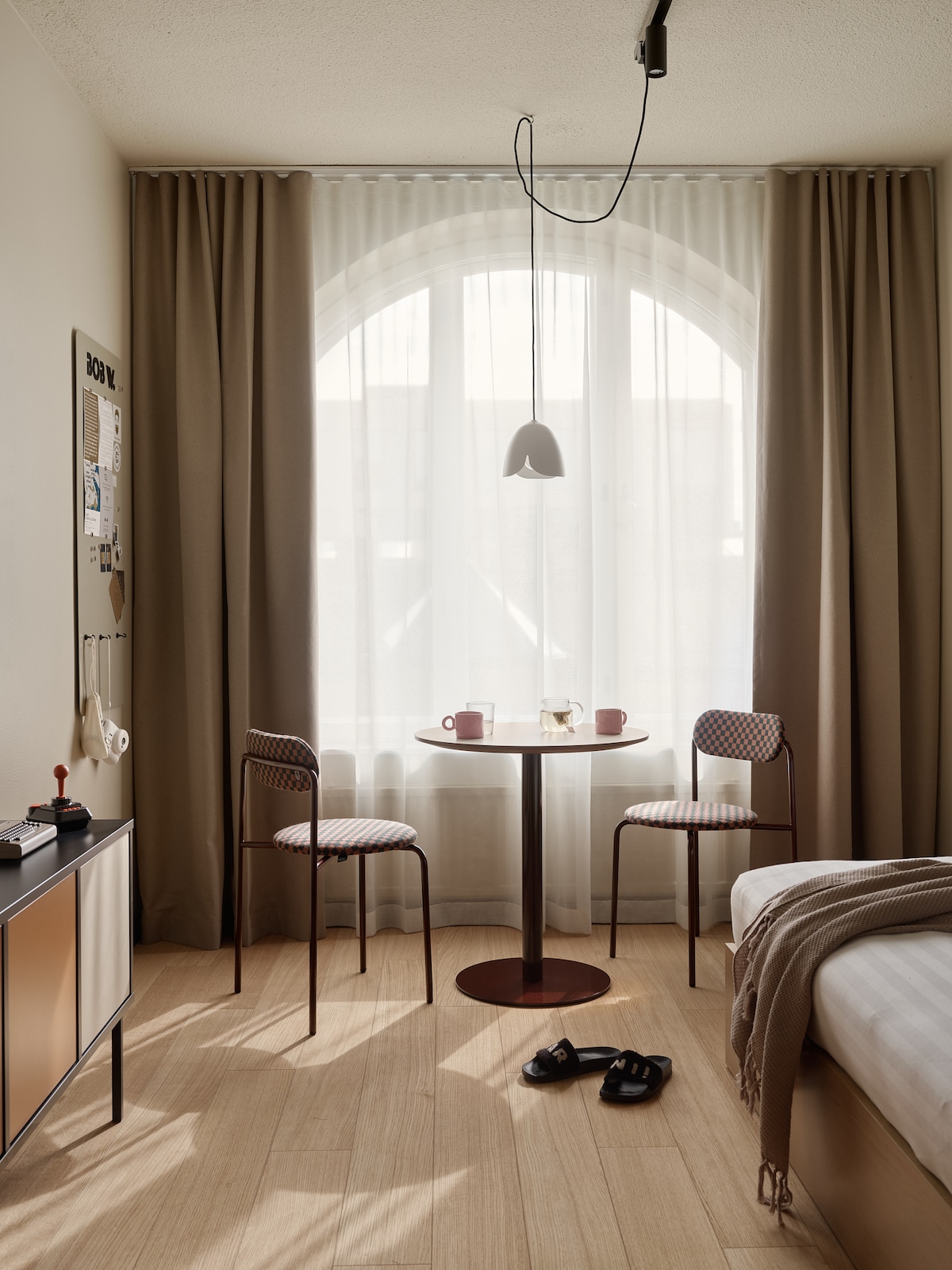 De eenpersoonskamer is uitgerust met hoogwaardige apparatuur voor zakenreizigers. Naast een goed bed is de kamer voorzien van een tv, koelkast, magnetron, waterkoker en servies. De kamer is comfortabel ingericht voor zelfs de meest veeleisende smaken. De badkamer is compact en uitgerust met hoogwaardige materialen. Voedselbereiding en was worden gedaan in de gemeenschappelijke ruimtes, daarnaast zijn de nodige schoonmaakspullen te vinden in de gemeenschappelijke schoonmaakkasten.