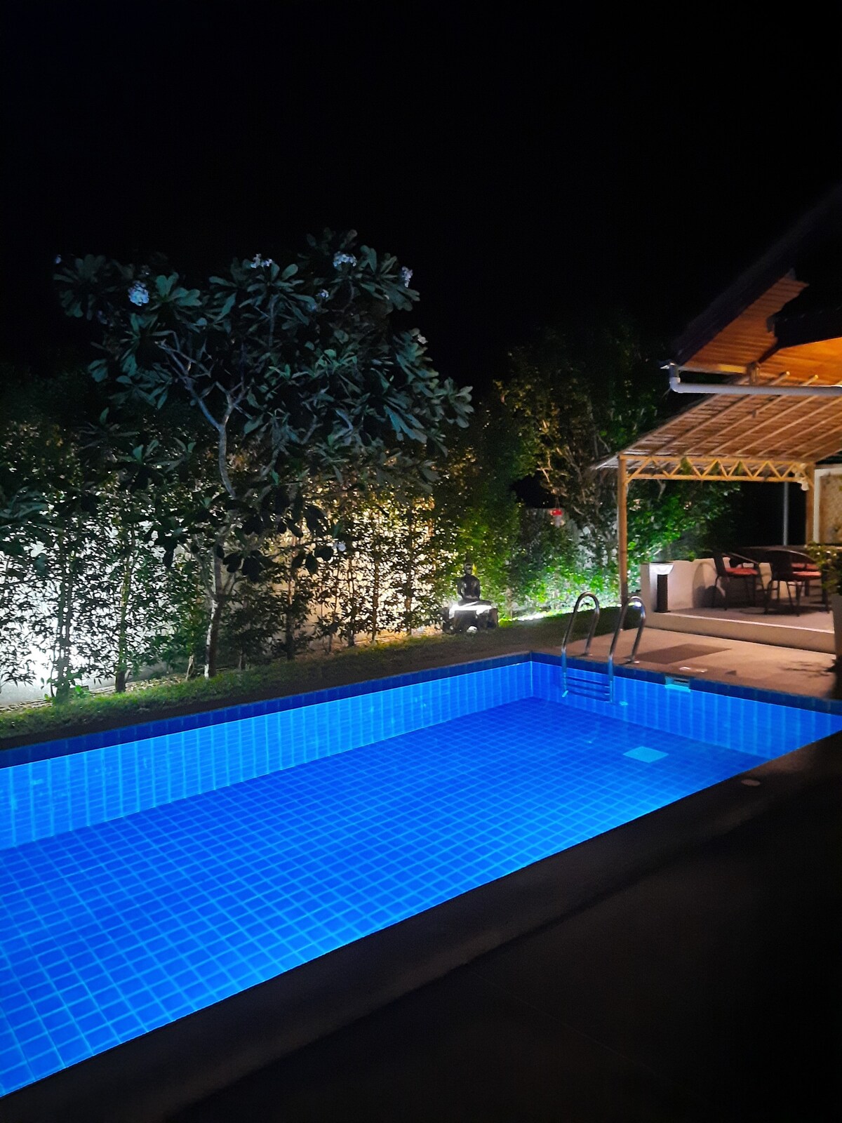 Kom en deel ons hoekje van de hemel onafhankelijk. Het welkom is vriendelijk en warm en luistert naar je behoeften Schoon en gezellig, 40m2 in een leuke buurt en dicht bij alles , het prachtige strand van Maenam op 600m , alles kan te voet worden gedaan De rustige en groene omgeving stelt je in staat om uit te rusten Het zwembad is toegankelijk vanaf je terras. Je kunt je snacks eenvoudig bereiden Airconditioningpakket 80thb/dag ter plaatse te betalen