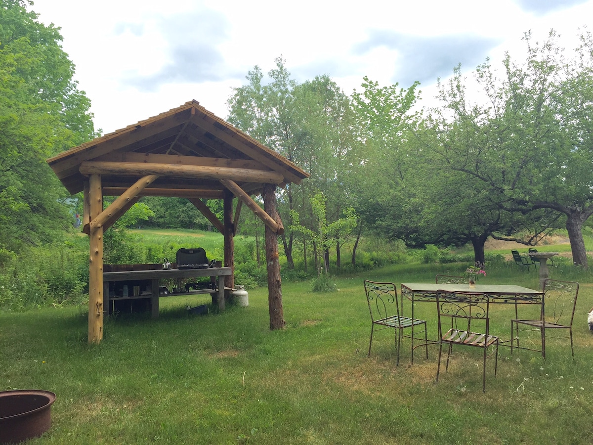 Welkom bij Ravens 'Crossing , een boerderij uit 1850 in Midcoast Maine in Appleton. Met twee gastenhuisjes om uit te kiezen, vind je jezelf in een rustige ruimte. Het bubbelbad werkt! Het ontbijt kost $ 40, afgeleverd bij je hut. Gedeeld bad in de studio, korte wandeling van de hut; buitenhuisje in de hut Of je er nu voor kiest om massage te ontvangen, te ontspannen in de sauna, in een huisje te verblijven, je kunt beslissen hoe aan je retraitewensen kunnen worden voldaan. Retreat houten huisje is off-grid. Er is een studio-appartement voor de gasten