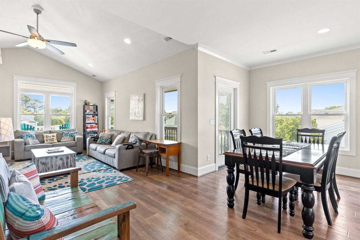 Welkom bij Ola Verde, een uniek, gezellig en centraal gelegen appartement met uitzicht op 180 graden uitzicht op Banks Channel en Greenville Sound aan de noordkant van Harbor Island in Wrightsville Beach. Het uitzicht is gewoon niet te verslaan, samen met de ontspannende schaduwrijke veranda en de nabijheid van lokale winkels en restaurants. Parkeer de auto voor de duur van je verblijf en dompel jezelf onder als een local met een wandeling of fietstocht naar het strand, koffie, hap om te eten of concert in het park. Veel voorzieningen ter plaatse