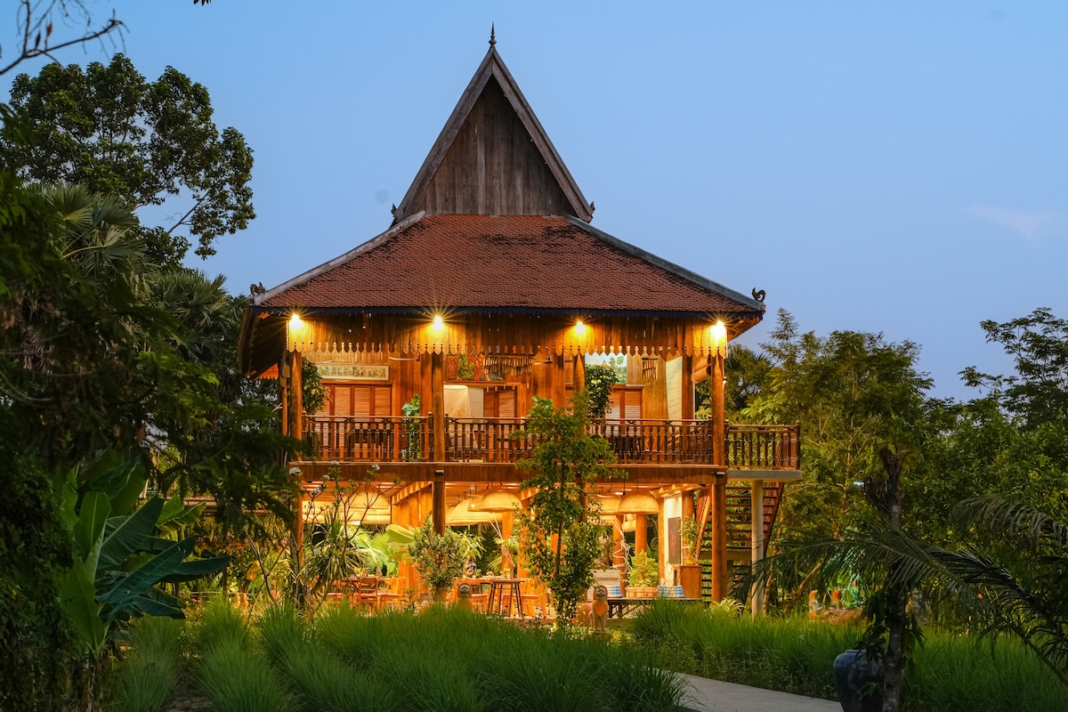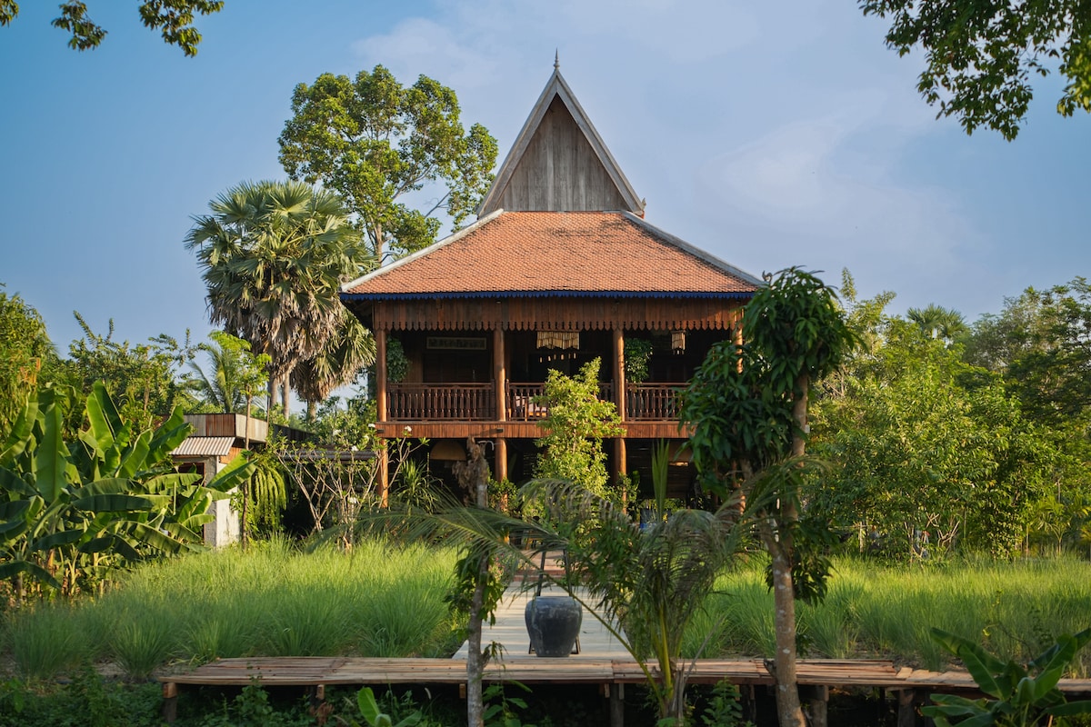 Verblijven met een klassieke houten Villa Dome over de rivier, een zeer mooie eethoek op het terras. Hardlopen door een supervriendelijke familie met expertise op het gebied van gastvrijheid, kreeg ook een hoge beoordeling van de reputatie van veel online platforms. We richten ons op voedselkwaliteit, hygiënist, waarde van de prijs en meer. Je kunt activiteiten doen zoals boottocht zonsopgangen of schaduw naar Tonle Sap Lake, Village & Local Market Tour, of fietsen. Je ervaring met supervriendelijk van onze mensen in de community