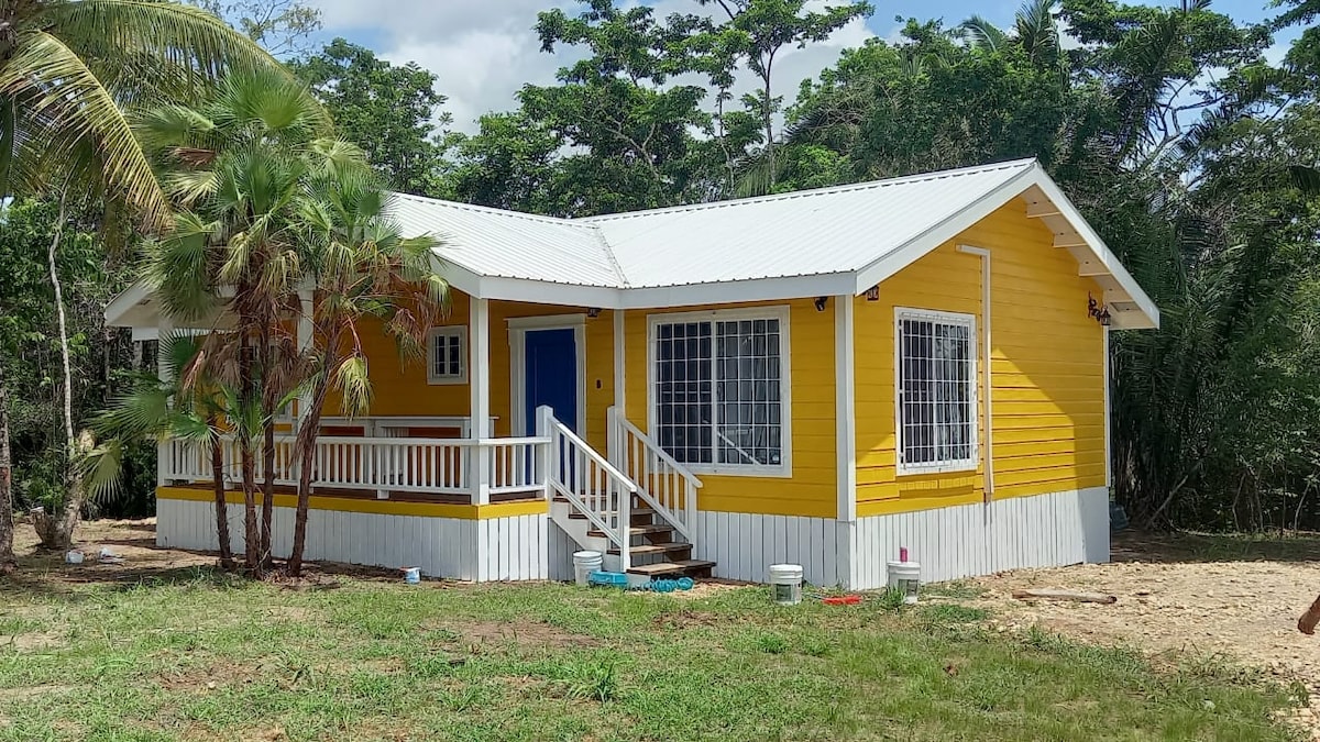 Ervaar rust in ons charmante gele huisje in de buurt van Spanish Lookout, gelegen in een weelderige, jungle-achtige omgeving. Het huisje is perfect voor gezinnen of groepen en beschikt over een volledig uitgeruste keuken en biedt comfortabel plaats aan maximaal zes personen. De hoofdslaapkamer beschikt over een kingsize bed, terwijl de tweede slaapkamer beschikt over een stapelbed met queensize matrassen. Met moderne voorzieningen, waaronder wasfaciliteiten, is het een ideaal toevluchtsoord voor diegenen die op zoek zijn naar zowel comfort als sereniteit in een prachtige natuurlijke ruimte.