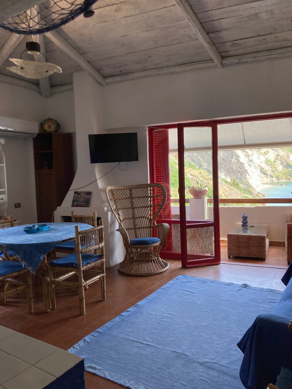 Pieds-dans-l'eau in Praialonga, spectaculair uitzicht op zee in een karakteristieke woning met een plein. Gemeubileerd in tinten blauw. Hoog wit houten plafond met een tussenverdieping met 1 queensize bed en 1 driekwart bed. Slaapbank in woonkamer. Kitchenette met inductiekookplaat, vaatwasser en magnetron. Wasmachine. Warmtepomp (warm/koud). Wifi. Geen lift. Gratis gebruik van een parasol, ligbedden en kajaks voor 3 personen. Rustig. Al tien jaar Superhost. CIN (nationale identificatiecode): IT101013C2R3U62743o