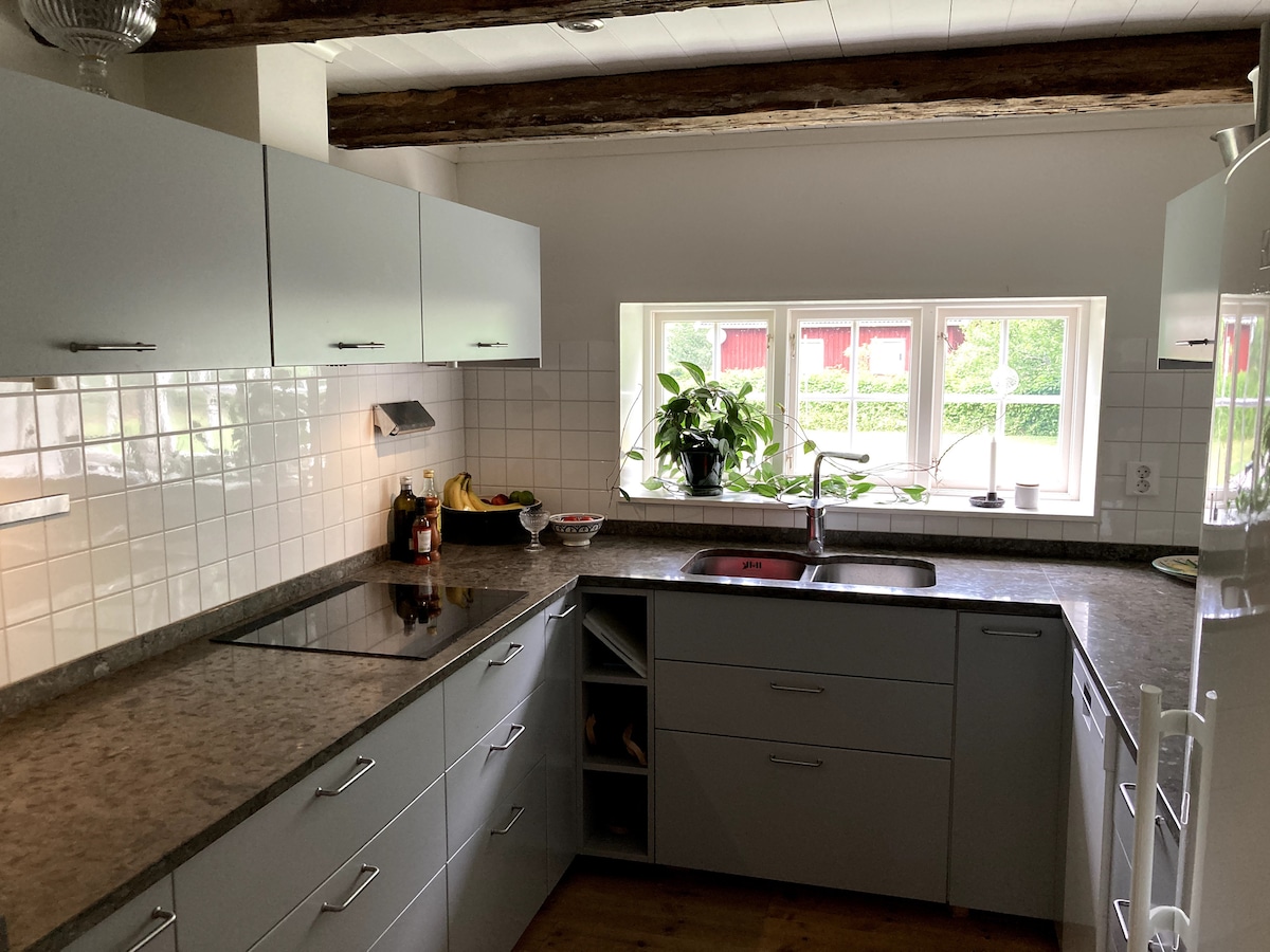 Ons huisje heeft een open plattegrond. Net buiten het huisje is het pelgrimspad en het biosfeerpad richting Spikens fiskeläge en verder richting Kasteel Läckö. De afstand naar Spikens vissersdorp is ongeveer 3 km en naar kasteel Läckö ongeveer 4 km. Kållandsö heeft veel mooie wandelwegen naast de pelgrimsroute en de biosfeerroute. Kasteel Läckö en het vissersdorp Spikens zijn leuke en aangename excursies. Aan de overkant van Kinneviken ligt Kinnekulle, die ook vele mooie excursies biedt.