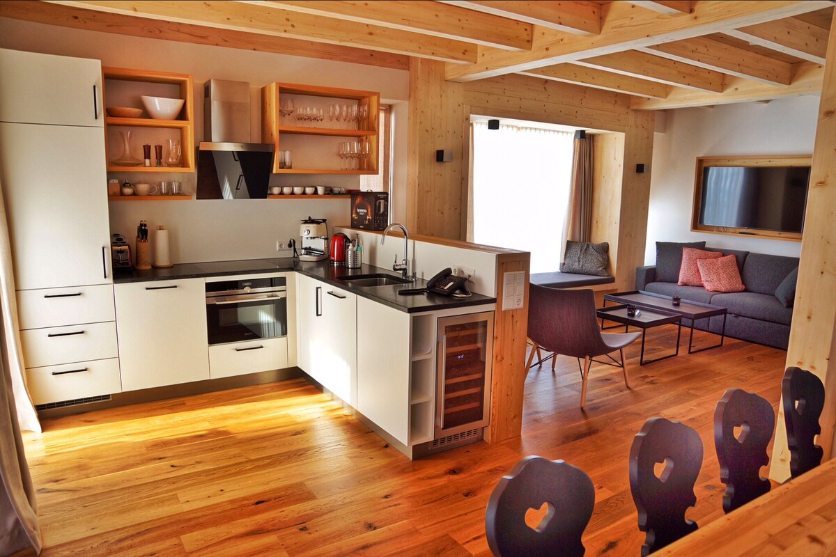 Dieses lichtdurchflutete Zweiraumappartement im ersten Stock bietet auf 41m² eine hochwertige Ausstattung mit edlen Vollholzmöbeln und Echtholzböden. Das separate Schlafzimmer mit feiner Leinenbettwäsche und die helle Wohnküche mit zusätzlicher Schlafcouch sorgen für ein großzügiges Raumkonzept. Genießt den atemberaubenden Panoramablick auf den See und die Berge von eurem 10m² großen überdachten, südseitigen Balkon.