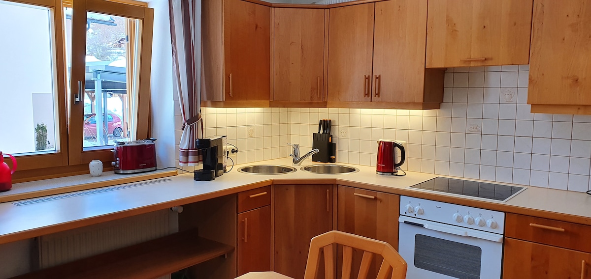 Je kunt ons comfortabele vakantiehuis huren met een moderne keuken- en woonkamercombinatie, 2 aparte slaapkamers en twee grote balkons. De flat is gelegen op de eerste verdieping van ons bed & breakfast en het huis is omgeven door bergen. De prijs is gebaseerd op self-catering, wat gemakkelijk is in de volledig uitgeruste keuken (vaatwasser, broodrooster, koffiezetapparaat, magnetron etc). Baby-apparatuur is gratis en voor kinderen zijn er spelletjes en speelgoed, binnen en buiten.