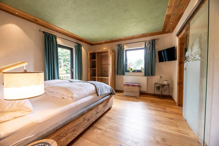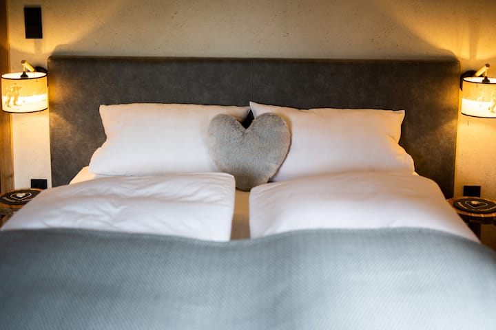 Ik heb het gastenverblijf van mijn ouders overgenomen We hebben de twee appartementen in het voorjaar van 2017 herbouwd naar onze ideeën. We stellen natuurlijke materialen op prijs ( bijv. Kleipister/ oud hout). Zo zijn de appartementen ook geschikt voor allergiepatiënten .