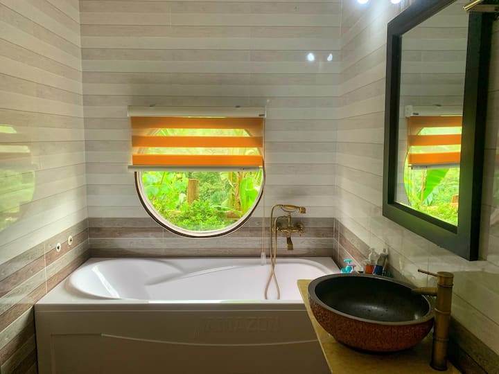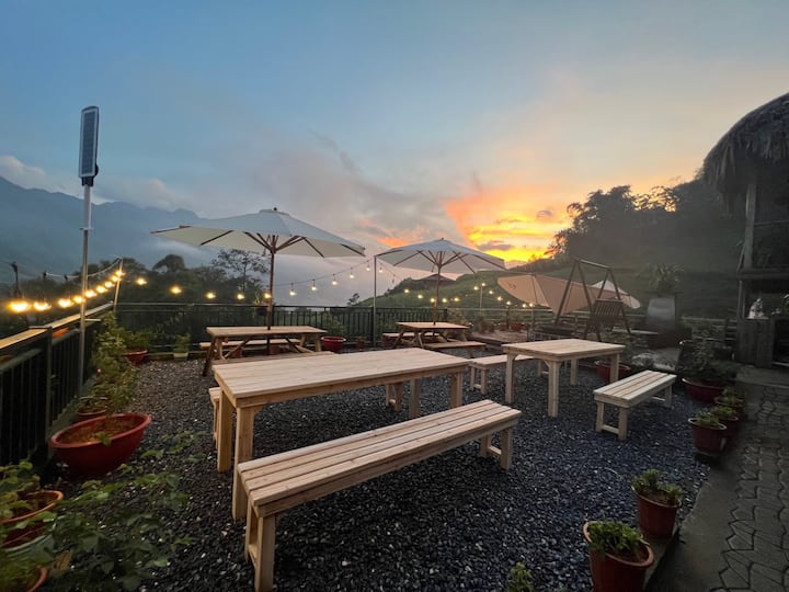 La Rosa House is gelegen in Su Pan dorp van de H'Mong etnische groep. Wij zijn volledig gescheiden van de lawaaierige en drukke stad. Vanuit de stad sla je af naar Cau May road met een poëtisch landschap van de bergen en bossen hier, de rivier slingert zachtjes langs de Muong Hoa-vallei, een glimp van de bergen en bossen verschijnen in de witte wolken. Het creëert allemaal zo 'n majestueuze scene. Blijf de Muong Hoa-weg volgen totdat de dorpspoort "Hoa Su Pan" aan de linkerkant in je ogen verschijnt, dat is het pad dat leidt naar La Rosa, dat door het honderd jaar oude bos ons loopt.
