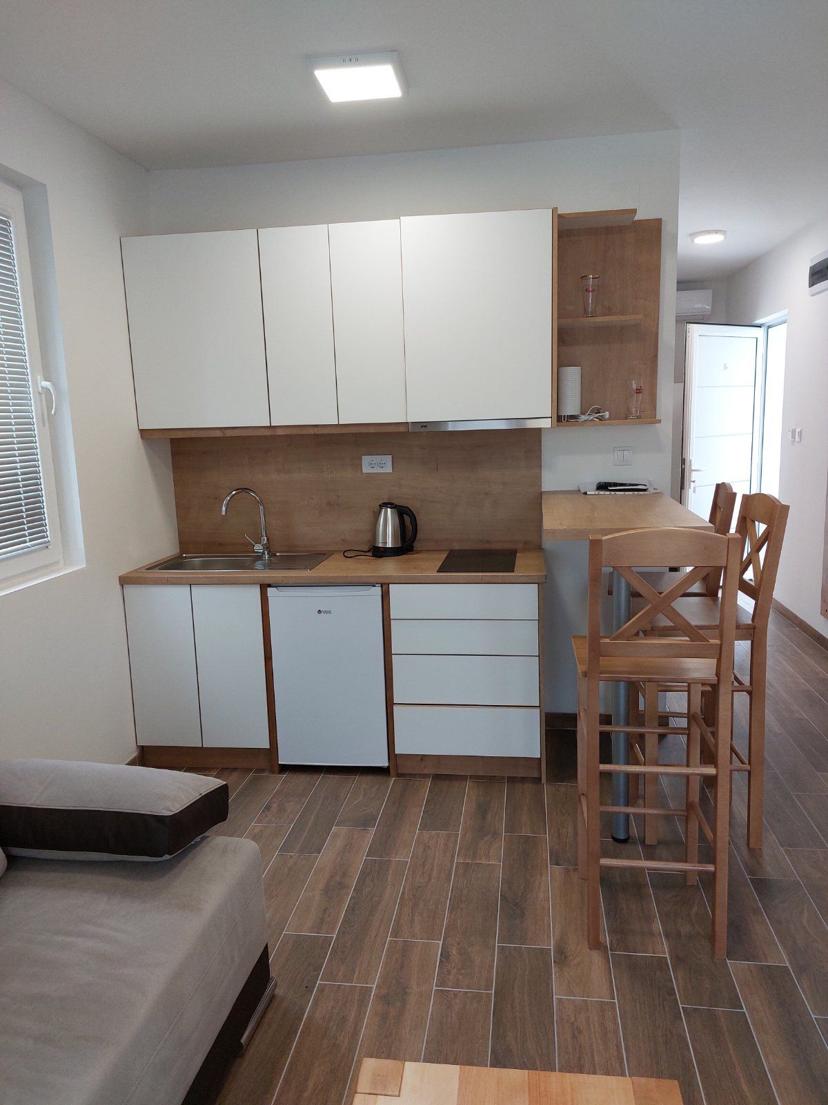 'Tramonto' is een gloednieuw, centraal gelegen appartement met twee bedden aan de oever van het meer van Srebrno Jezero. Het beschikt over een tweepersoons Frans bed, een intrekbare bank, een complete keuken met een koelkast, een kookplaat, een waterkoker en alle bijbehorende accessoires, een badkamer, een warderobe en een terras met uitzicht op het meer en de centrale promenade. Het belangrijkste strand ligt voor het gebouw, met een minimarkt, een eetkraam en de beroemde 'Beach Bar' -club allemaal binnen 30 meter van je ingang. Gratis parkeren ook!