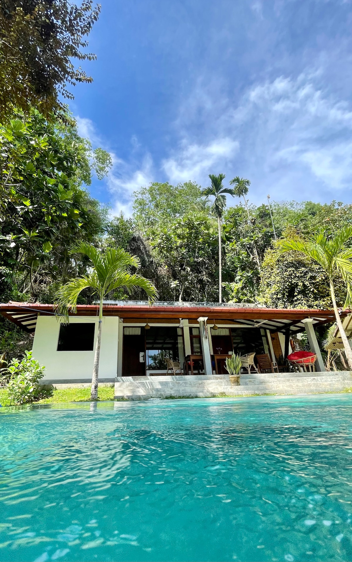 Word wakker met vogelgezang en zacht ochtendlicht dat door de bomen filtert. Een licht, rustig huis in de buurt van een klein meer, omgeven door weelderige jungle, vlinders, warme briesjes en de zachte geluiden van de natuur. Perfect voor thuiswerkers, schrijvers en bewuste reizigers die een tijdje als locals willen leven. Kook, lees, adem en ervaar het echte Sri Lankaanse leven – een rustige, authentieke thuis om te vertragen, langer te blijven en echt opnieuw te verbinden met wat het belangrijkst is. Hier voelen eenvoudige dingen als ware luxe. 🌿