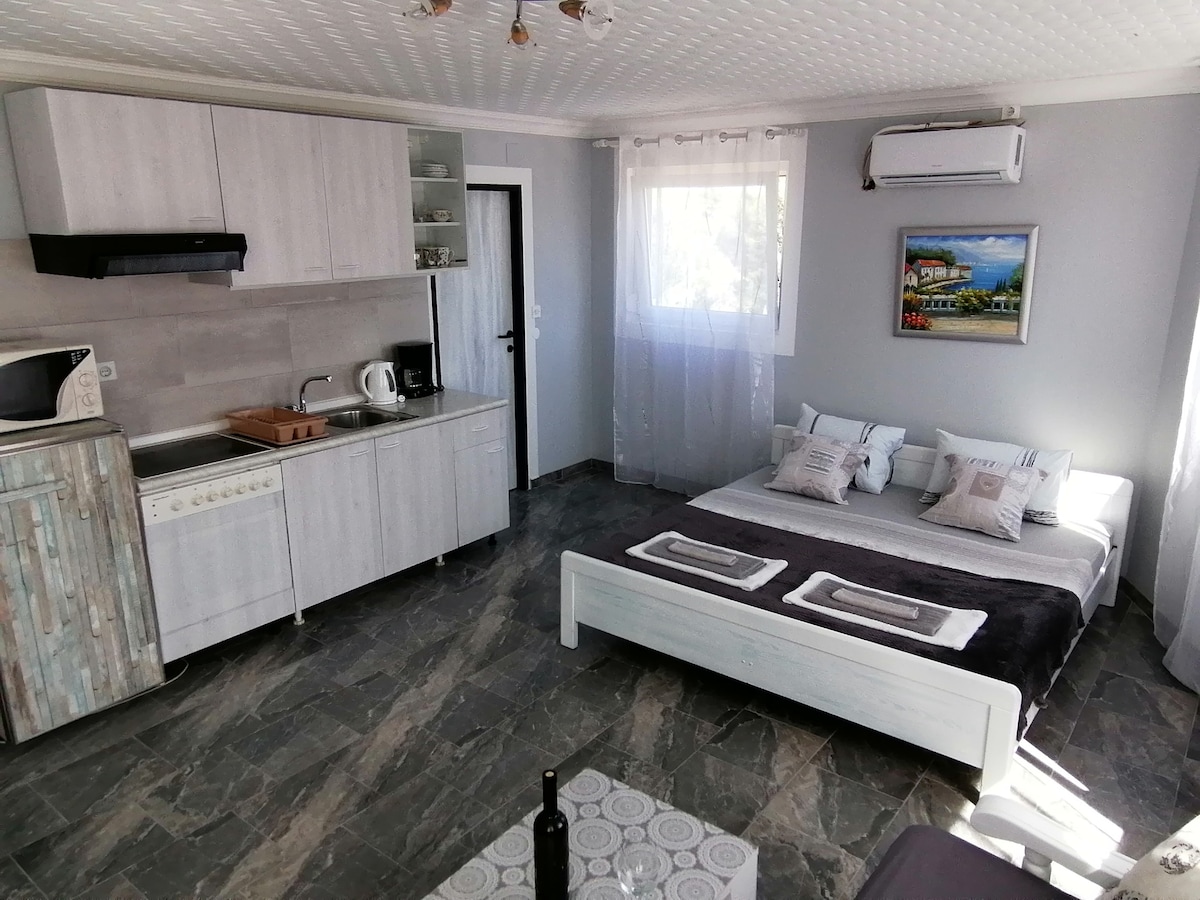 Comfortabel studio-appartement voor maximaal twee personen, 33 m², gelegen in het rustige deel van Vodice met een eigen parkeerplaats. Er is 500 meter naar het nieuwe moderne strand, dat naar het centrum leidt en het bevat restaurants, cocktailbars en andere inhoud. Verhuurder biedt ook zelfgemaakte olijfolie en honing. Voor informatie over wandeltochten, historische bezienswaardigheden, eilanden of kleine verborgen stranden staan wij tot je beschikking.