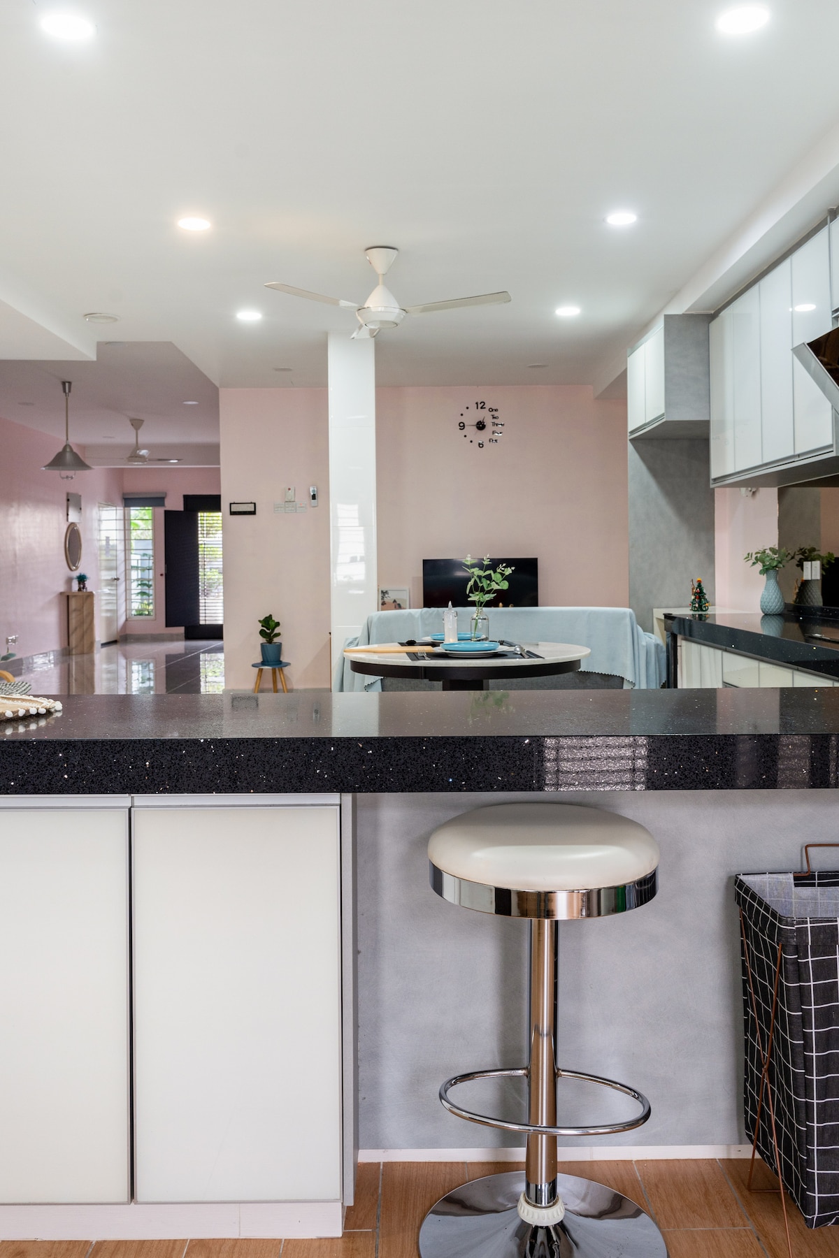 Dompel jezelf onder in entertainment met een 55-inch XiaoMi Smart-tv, compleet met Netflix en YouTube. Snel internet terwijl je geniet van gratis voorzieningen zoals tandpasta en shampoo. Word wakker met een adembenemend vrij uitzicht op de stad en creëer een pittoresk begin van je dag. Ervaar de belichaming van modern comfort en gemak bij Monochrome-ontworpen homestay. Ervaar het levendige Petaling Jaya in de SS2 Hub, waar energie en voorzieningen samenkomen, waardoor een bruisende sfeer ontstaat.