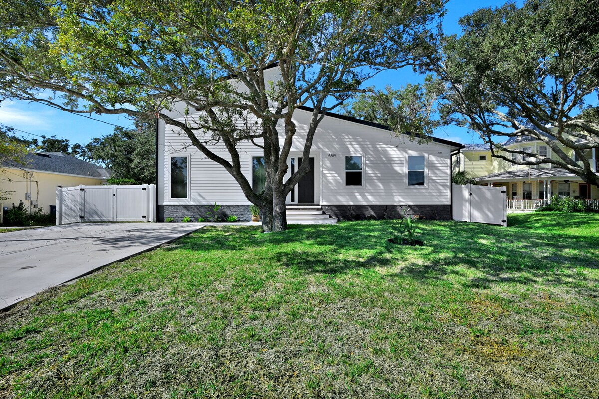 Parkeren buiten de straat voor 2 voertuigen 2 minuten lopen naar St George St 5 minuten rijden naar Anastasia State Park Beach Op 6 minuten rijden van fitnessclub/zwembad Snel internet via Starlink Luxury Retreat in Historic Downtown. Geniet van een charmante vakantiewoning met een ruime woonkamer, gastronomische keuken en luxe baden. Dompel jezelf onder in de rijke geschiedenis en levendige cultuur, met zijn charmante straten en lokale bezienswaardigheden. Of je nu op zoek bent naar avontuur of ontspanning, deze retraite biedt de perfecte uitvalsbasis.