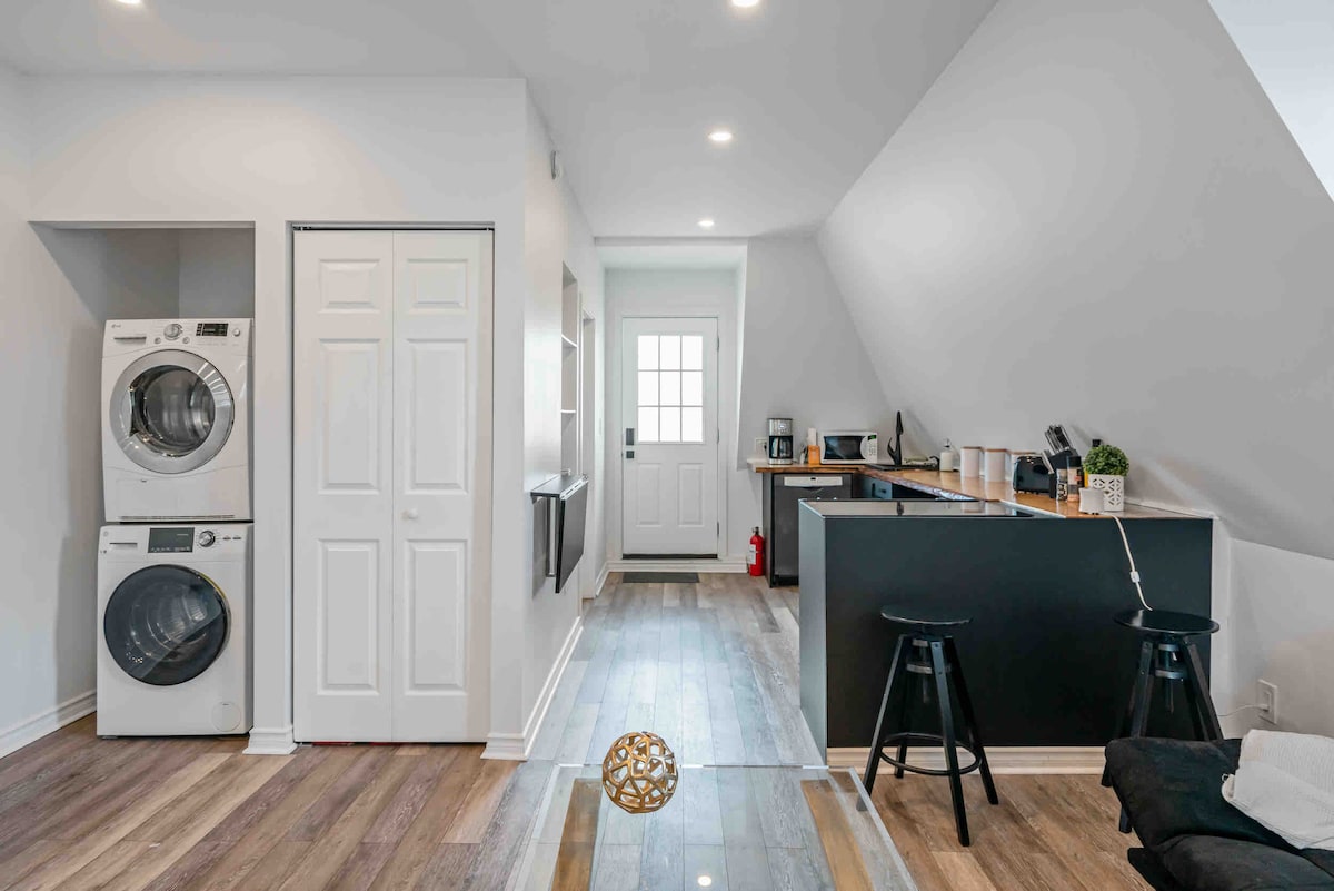 Experience comfort in this beautifully renovated downtown loft in St. Catharines. Enjoy a stylish stay with all the essentials you need. Relax on your private patio with a morning coffee or an evening drink. Just steps away from the bus terminal, restaurants, bars, and LCBO. While exploring the urban area, you may encounter a mix of urban life, including the homeless, who are generally friendly. Perfect for couples, small families, or solo traveler, perfect for up to 2 adults.