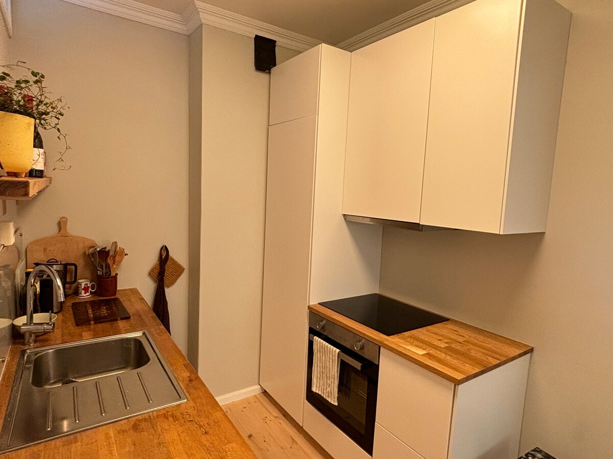 Geniet van een stijlvolle ervaring in een appartement van hoge kwaliteit. Het appartement is rustig en stil, midden in de stad, op loopafstand van absoluut alles. De plafondhoogte van 2,80 m maakt het appartement licht en ruim. Het appartement is gelegen op een hoge begane grond en bestaat uit een slaapkamer, badkamer, hal en woonkamer. De zee is vlakbij met 5 minuten lopen. Het kasteelpark en St.Hanshaugen park zijn twee leuke parken in de buurt. Het is vijf minuten lopen naar Nationaltheatret station en Aker Brygge.
