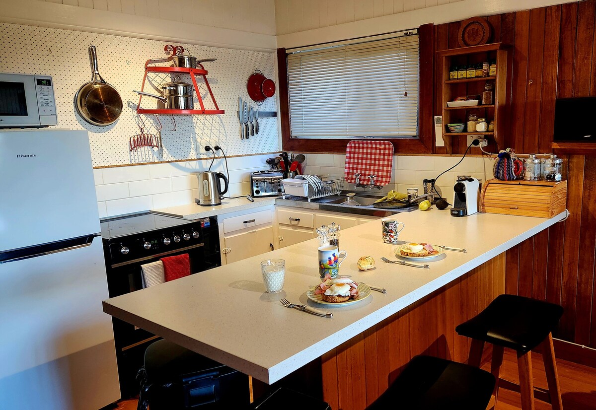 Geniet van de zon bij Old Salty, boek 3 nachten en geniet van een gratis fles lokale mousserende wijn om te proosten op je ontsnapping aan de oostkust! Deze rustieke accommodatie ligt tussen gomboomgaarden met een prachtig uitzicht op het strand, de oceaan en de lagune. Het heeft een open woonkamer, een eigen gastenvleugel en een ruime ouderlijke ruimte met eigen badkamer. Geniet van het zonovergoten terras, de vuurplaats en de omheinde tuin voor harige vrienden. Ontspan, verken en geniet van de zoute lucht in dit rustige stukje van de oostkust van Tassie.