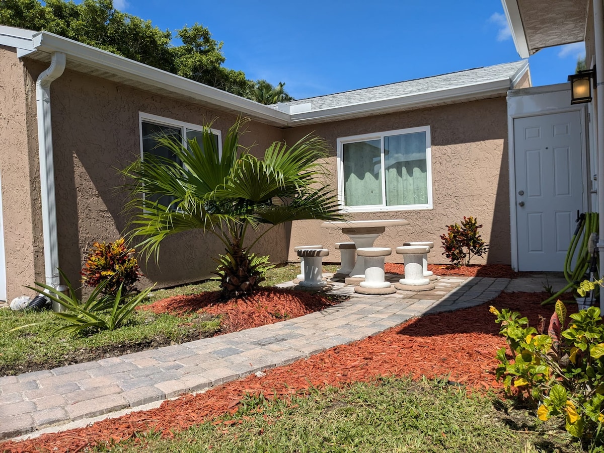 Deze woning is gelegen in de wijk Southbend Lakes in de prachtige Port St Lucie, Florida. Dit is één van de mooiste wijken van de omgeving. Tropisch thema gastenverblijf met 55 inch roku-tv en queensize bed. Eigen badkamer en toegang tot semi-privé verwarmd zoutwaterzwembad. Eigenaren en kinderen mogen ook af en toe gebruik maken van het zwembad. Neem de tijd om te genieten van het geluid van de natuur om je heen. De achtertuin kijkt uit op het kanaal en heeft een verscheidenheid aan planten, bloemen en bomen.