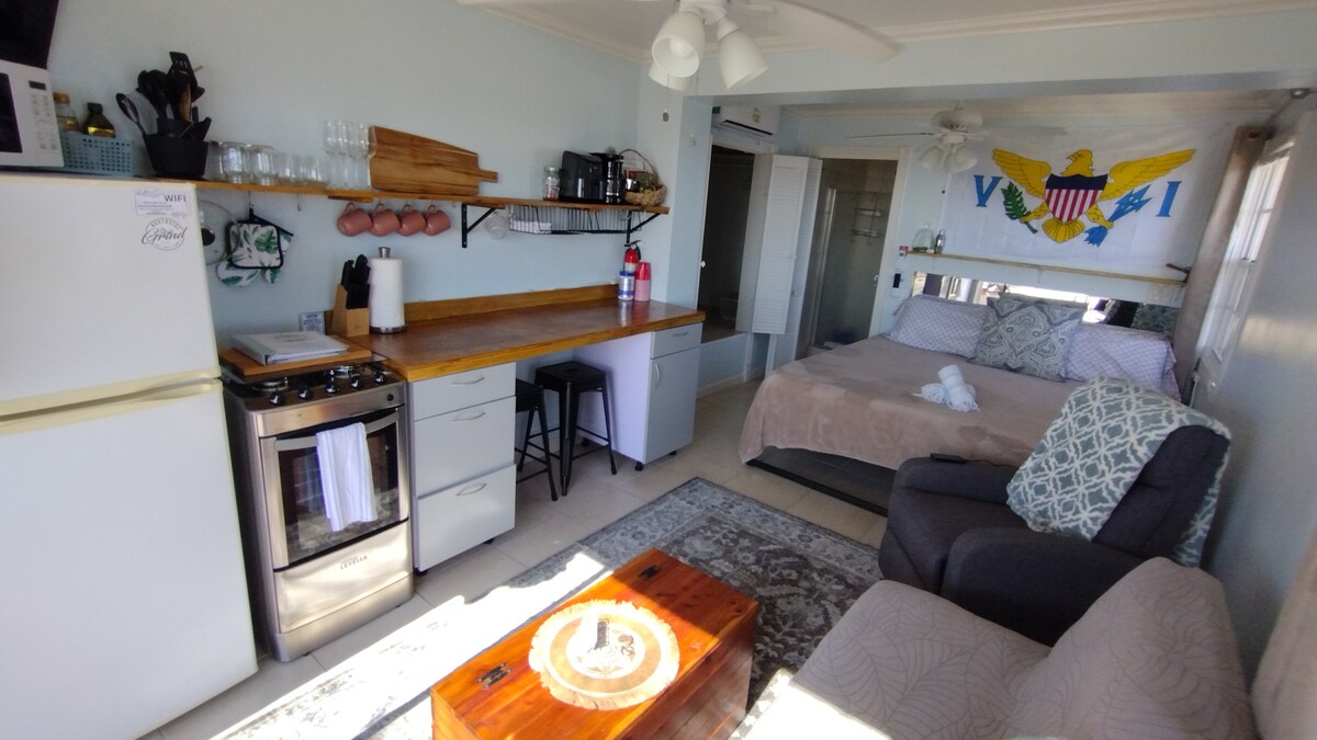 Reserveringen voor één nacht zijn welkom! Een luxe kunstloft-ervaring in het hart van St. Thomas, deze exclusieve ruimte op een gunstige centrale locatie biedt een chique thuisbasis, met strak design, conciërgeopties, + creatieve vibes. Perfect voor zowel avontuur als sereniteit. Voldoende ruimte om te loungen, met een evenwichtige historische/eigentijdse esthetiek, en in de buurt van stranden, restaurants, historische bezienswaardigheden, boetieks, + veerboot/luchthaven/vervoer. Eigen omheinde parkeerplaats en een café en kunstgalerie direct beneden.
