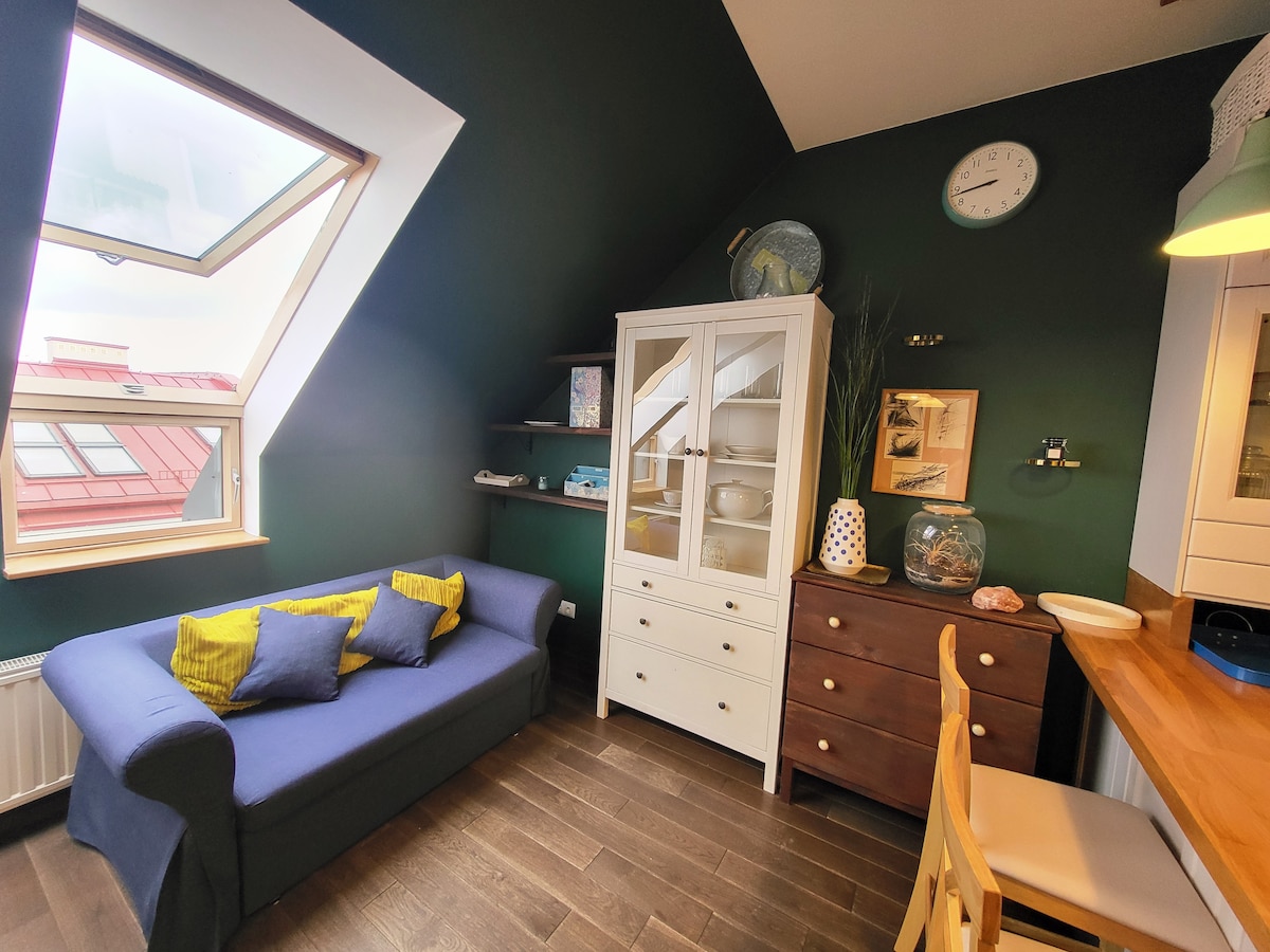 Mooi nieuw appartement gelegen in de groene wijk van de stad biedt originele inrichting en comfortabele verblijfsvoorwaarden . Een designstudio van 19 m2 heeft een aparte slaapkamer , een ruime badkamer, een groot terras met uitzicht op het groen en gratis ondergrondse parkeergelegenheid. Voor jouw gemak - Netflix, smart-tv, wifi - Schoonmaak met beddengoed en handdoeken tijdens je verblijf - Geen contact inchecken - Topnormen voor hygiëne , privacy en veiligheid.