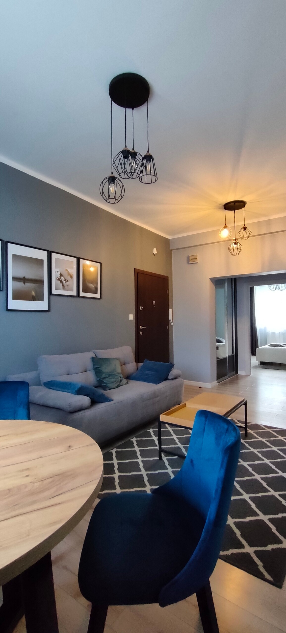 Apartment Linterna is een elegant toevluchtsoord aan zee in het moderne Let's Sea Gąski complex, op slechts 100 meter van het strand. Ontworpen voor 4 personen, geniet het stijlvol ingerichte appartement met blauwe suède, gouden accenten en een ruimte gecreëerd voor comfort. Een afsluitbare slaapkamer met een groot bed, een woonkamer met een werkruimte op afstand, internet en een ruimte in de garage. Perfect voor een gezinsuitje of een romantisch weekend aan zee, met toegang tot het zwembad, bubbelbad, sauna en tennisbaan.