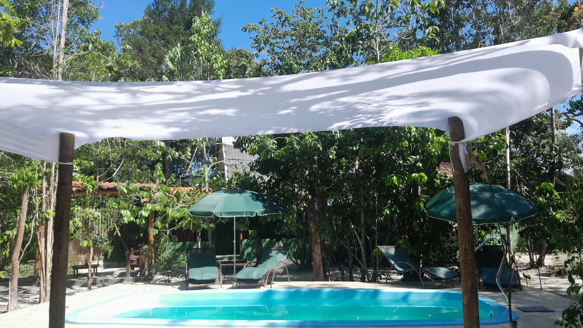 Gezellig huis in het privé condo, Salamandra, met 3000 m2 groene omgeving. Gelegen tussen de rivier en de zee, voor wie houdt van contact met natuur en comfort. Privé, veilig, eenvoudig en rustig. Rustieke stijl, aangename verlichting en decoratie. Met toegang tot het strand voor en tussen de stranden van Araçaipe en Apaga Fogo, de mooiste en meest bezochte van de Arraial D'Ajuda. In de buurt van de veerboten naar Porto Seguro en op 3 km van het centrum van Arraial. Je zult je thuis voelen.