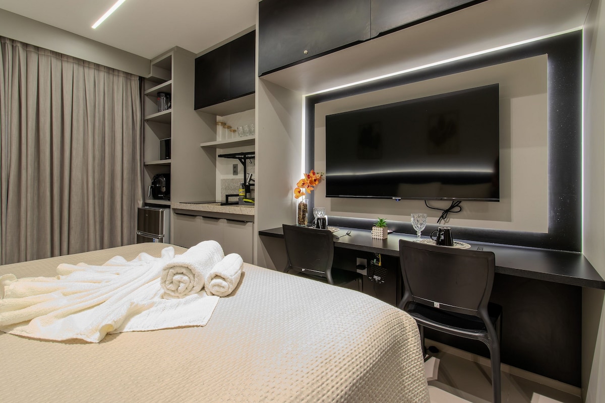 • Flat gezellig, verfijnd en gezellig aan de rand van Boa Viagem met eigen whirlpool voor een warm en ontspannend bad; • Met Alexa domotica om je stad aangenamer te maken; • Uitstekende locatie, dicht bij de Shopping Rio Mar, hortifruti, apotheken, bakkerij, sportscholen, restaurants en gelegen op 7 km van de luchthaven; • Onder de accommodaties voeren we ontsmetting en professionele hygiëne uit met apparatuur van de nieuwste generatie, wat zorgt voor een veilige omgeving.