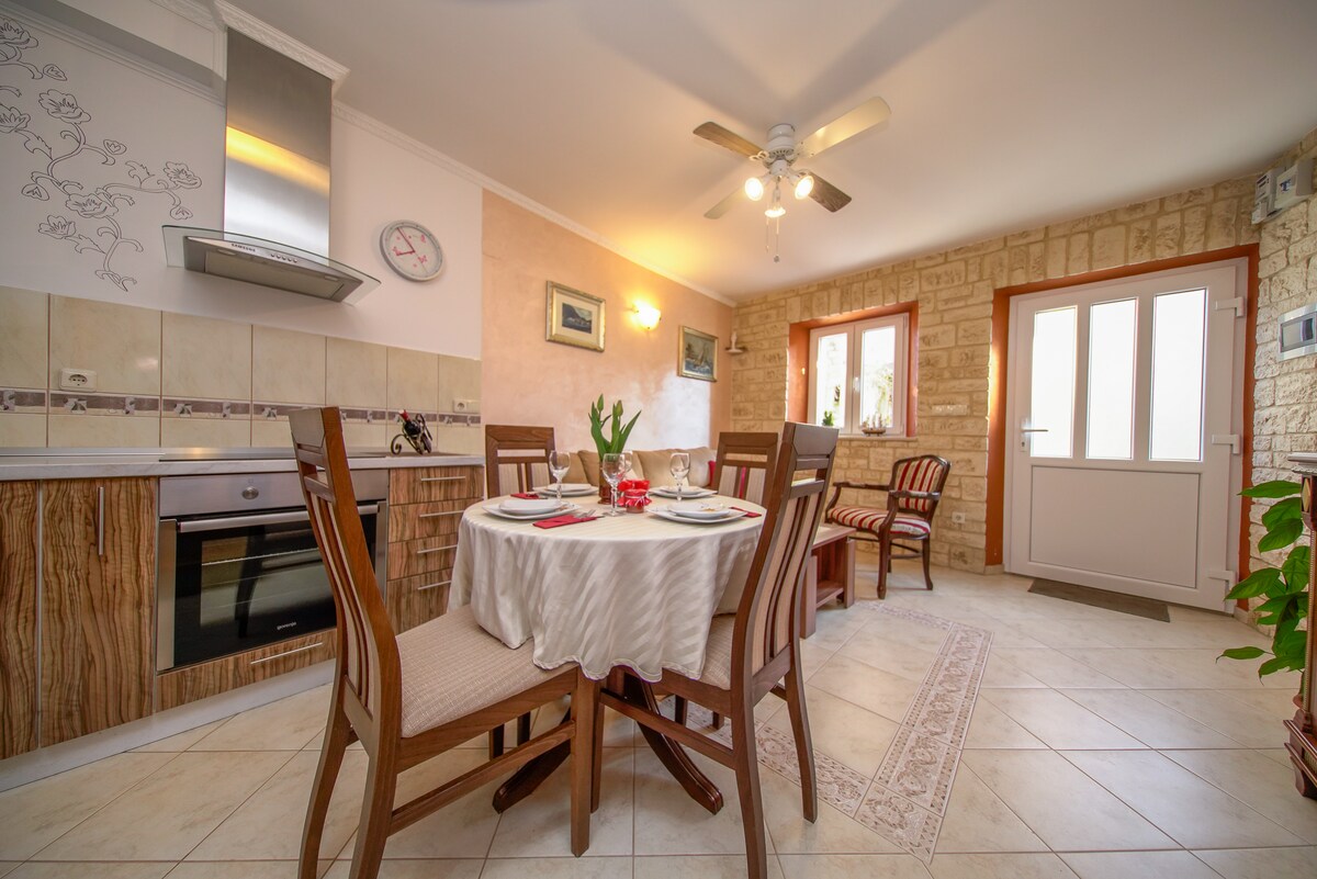 Ontspan met het hele gezin op deze rustige plek om te verblijven. Het is een mooi appartement gelegen in het natuurreservaat Mali Ston Bay, met alle gemakken die je maar kunt wensen! Het appartement is handig, met een tweepersoonsbed in de slaapkamer en een woonkamer met een slaapbank die kan worden omgebouwd tot een comfortabel tweepersoonsbed. Het appartement is voorzien van airconditioning, gratis wifi en een tv. De keuken is volledig uitgerust met alle benodigdheden die nodig zijn voor uw eigen zelfgemaakte eten.
