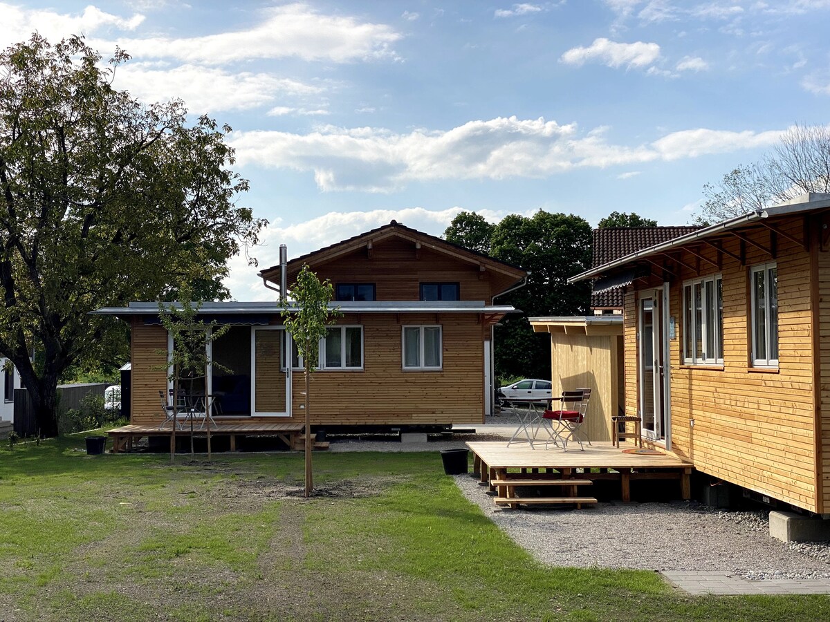 Unser Guesthouse liegt absolut ruhig u uneinsehbar am Dorfrand von Törwang mit uneingeschränktem Blick auf die Hochries und ins Inntal. Im Sommer 2020 wurden 2 Niedrig-Energie-Holzhäuser aus heimischen Hölzern komplett schadstofffrei erbaut. Ein Ort des Loslassen, des Durchatmens. Mit eignem Garten u Süd-West-Terrasse. Das Ferienhaus verfügt über einen großen Wohnraum mit Schreinerküche, Esstisch und Schlafsofa mit Federkern-Matratze (200 x 160 cm) und einem Schlafzimmer & Bad mit Dusche.