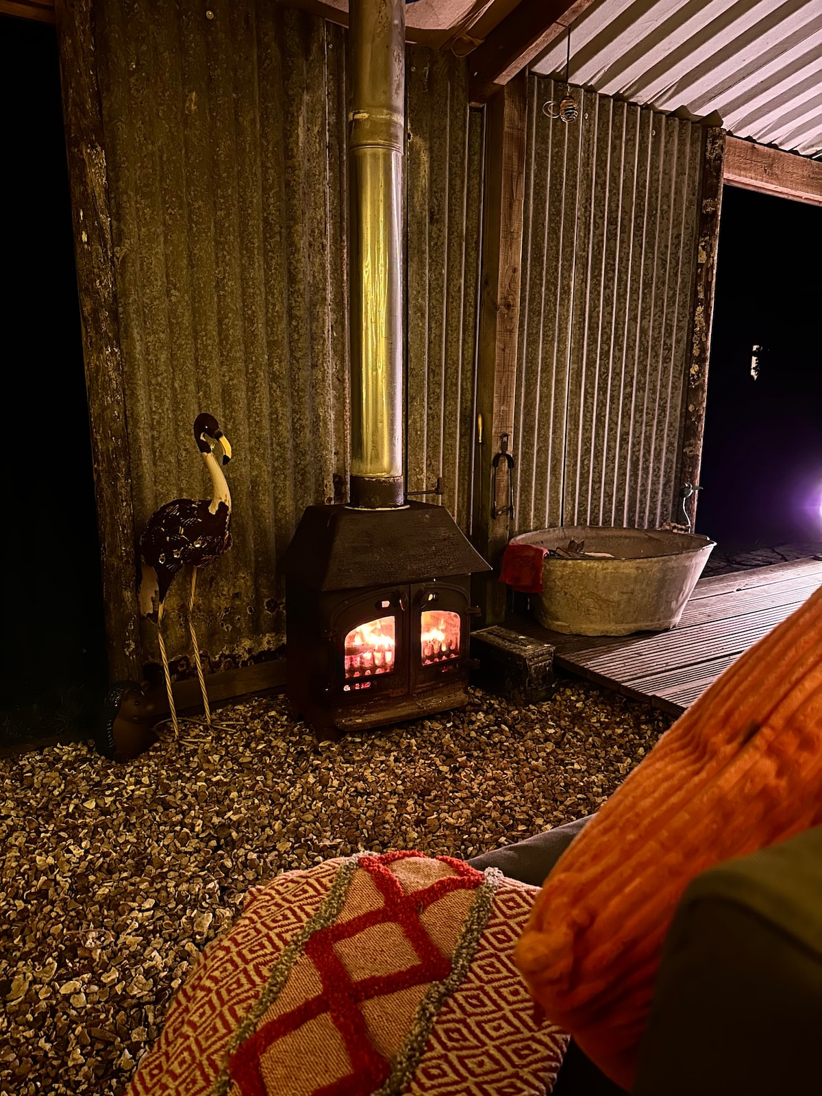 Court Farm, Kingsbridge. Bubbelbad en houtkachel