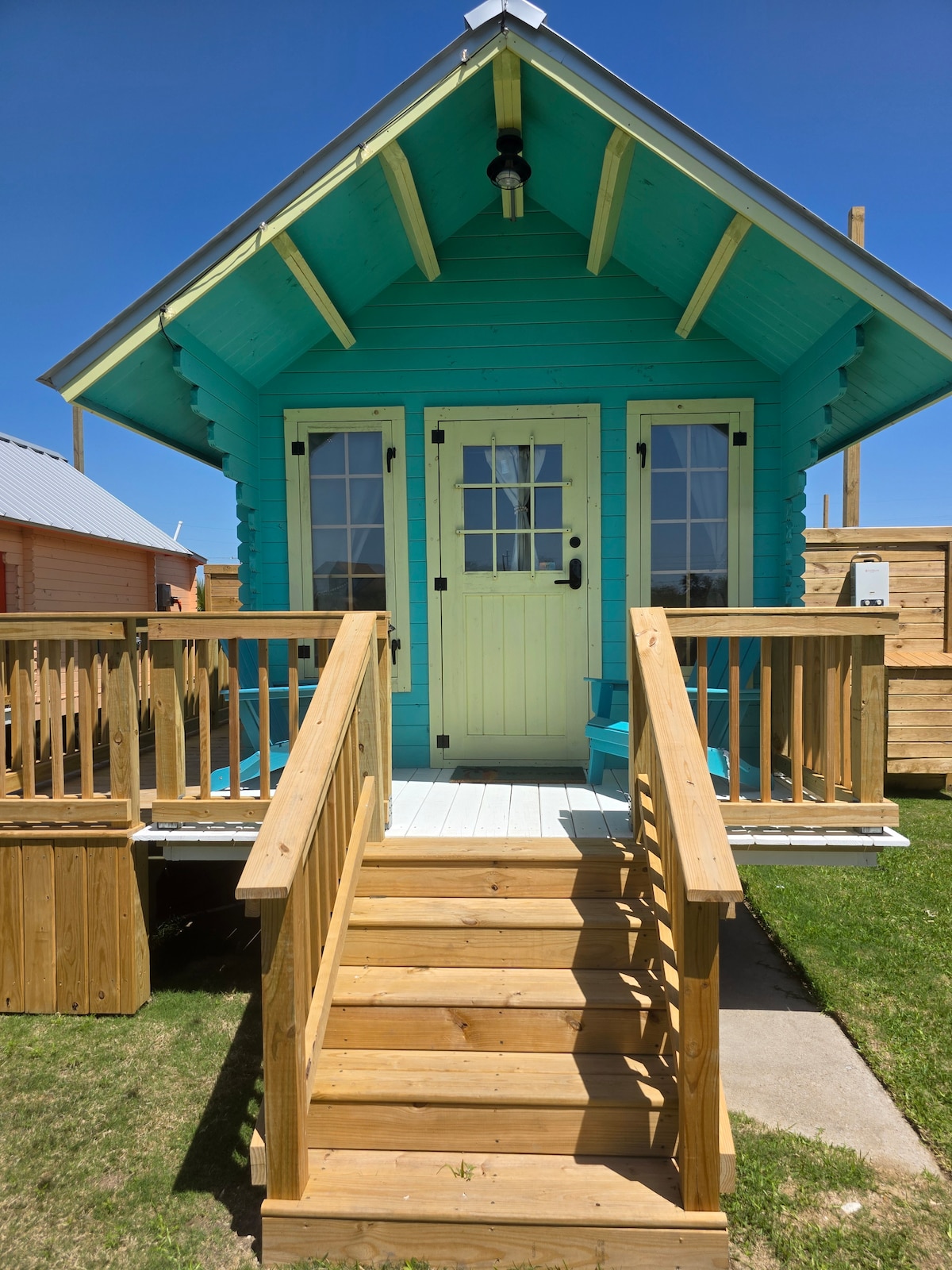 Charming custom tiny house in a quiet backyard with private entry. Features a cozy loft, kitchenette, full bath, A/C, and Wi-Fi. Enjoy outdoor seating under string lights, with birdsong and local wildlife adding to the peaceful vibe. Close to shops, parks, and downtown—perfect for a relaxing getaway or unique staycation! -Located a few blocks from Texas Rice Festival grounds -15 mins from beach/High Island -5 mins from Larry's Trade Days -Walking distance to local farmers market