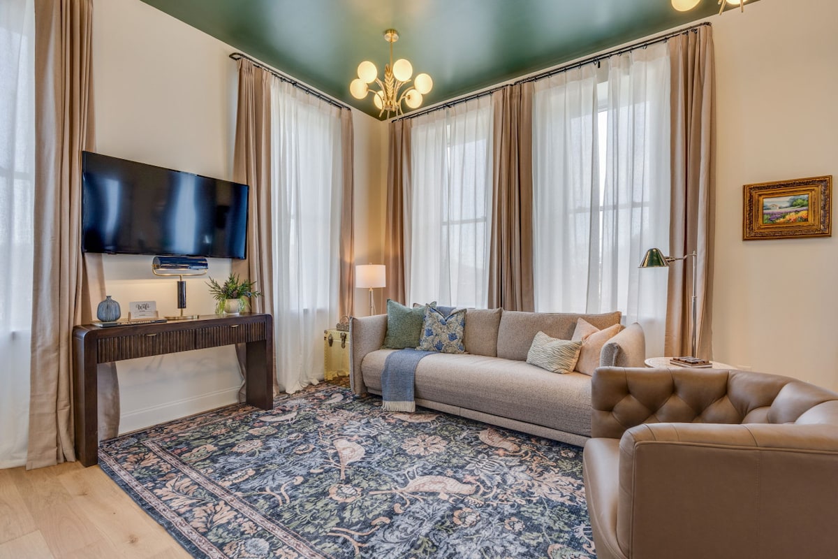 This building was home to the original 1908 post office. It recently received its second full renovation with modern amenities while preserving its original corridors and doors making way for its new life as a boutique hotel space. Downtown Elizabethton is committed to ongoing revitalization projects including tourism enhancement, public art projects, and building renovations. We are proud to be play a small role in this ongoing effort.Enjoy the glamour of this stylish, upscale place.