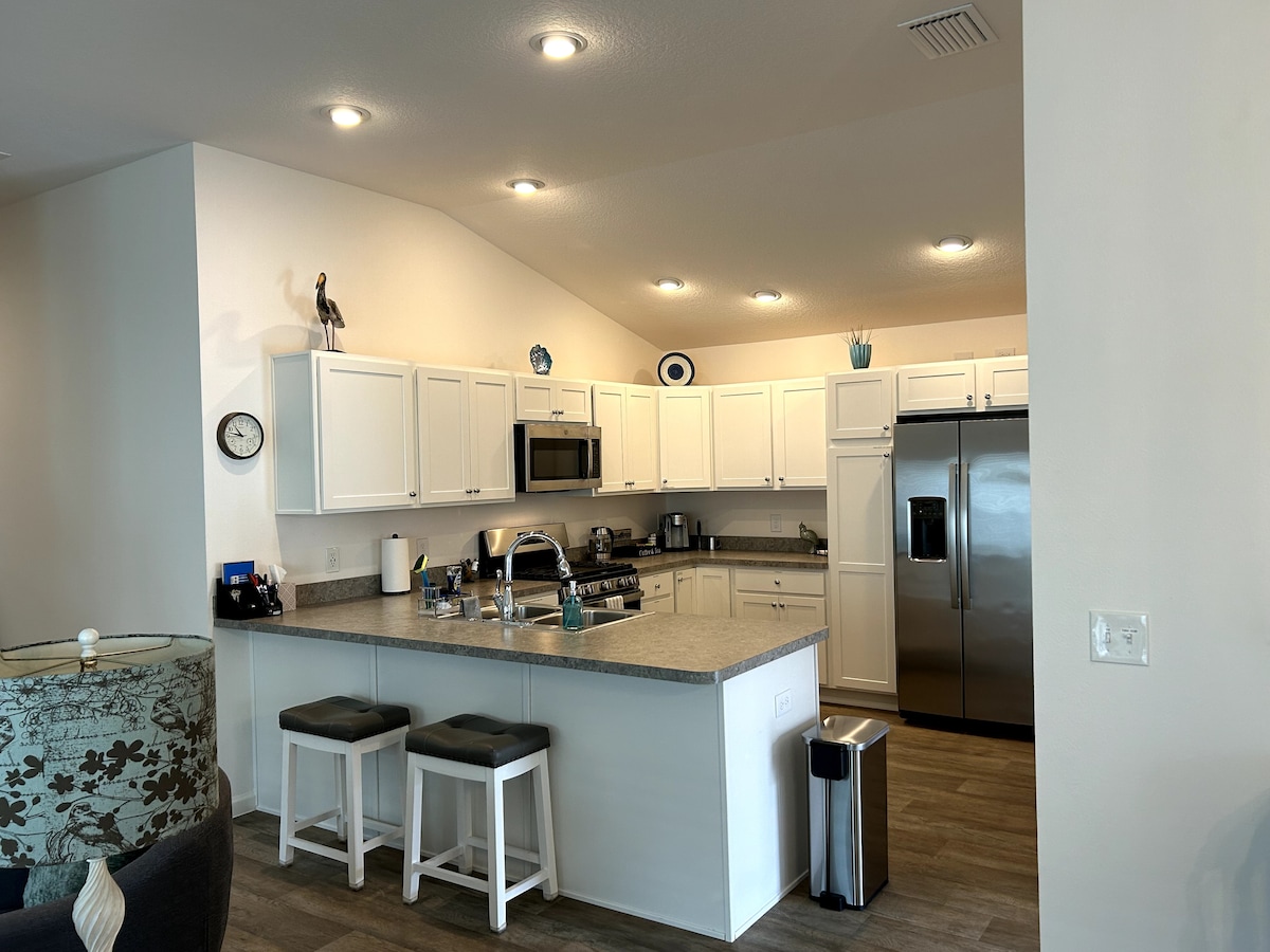 Welcome to The Villages Retreat, a charming house nestled in the heart of Moultrie Creek Village! This delightful property boasts three bedrooms, providing ample space for a comfortable stay, perfect for families or groups visiting to watch their grandkids sports games, or to celebrate their graduation! This Home is Centrally Located and is within 5 minutes from locations such as: The Villages Charter Highschool and it's stadiums, The Tracy Performing Arts Center, and East Port Town Square.