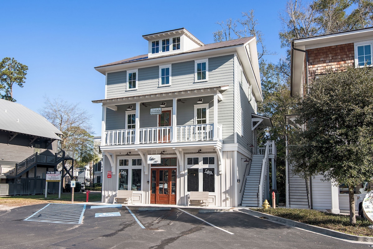 Een koetshuis met één slaapkamer in een nieuw gebouwd laaglandhuisje in de prachtige Stock Farm-buurt Historic Old Town Bluffton op loopafstand van de vele restaurants, galeries, winkels en historische gebouwen die deze charmante stad te bieden heeft. Comfortabel, gezellig en smaakvol ingericht, "The Bluffton Bird House" beschikt over nieuwe keukenapparatuur, een full-size gestapelde LG wasmachine en droger en alle voorzieningen die nodig zijn om een comfortabel, aangenaam verblijf te garanderen.