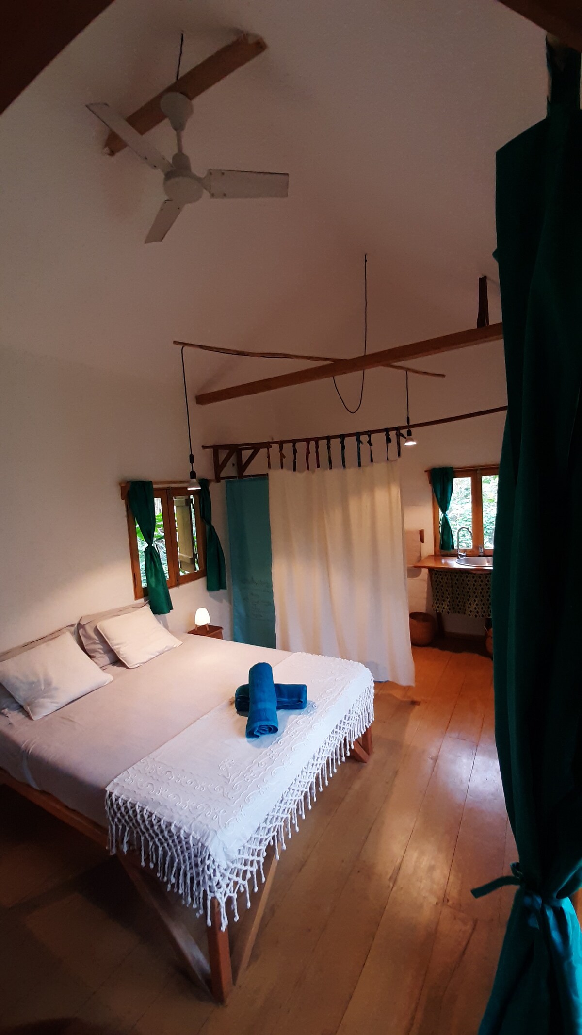 Centrale locatie midden op het eiland, geweldig om te wandelen, te ontspannen en te genieten van de unieke natuur. Het huis ligt in het kleine dorpje Picante met een groot terras met uitzicht op de grote prachtige tuin, waar papaya, ananas en bananen groeien. Hier kun je genieten van de rust en het ongerepte regenwoud. Principe maakt indruk met de ongerepte jungle met boomreuzen en een uniek vogelleven. Príncipe imponeert met verlaten stranden. Momenteel geen wifi.