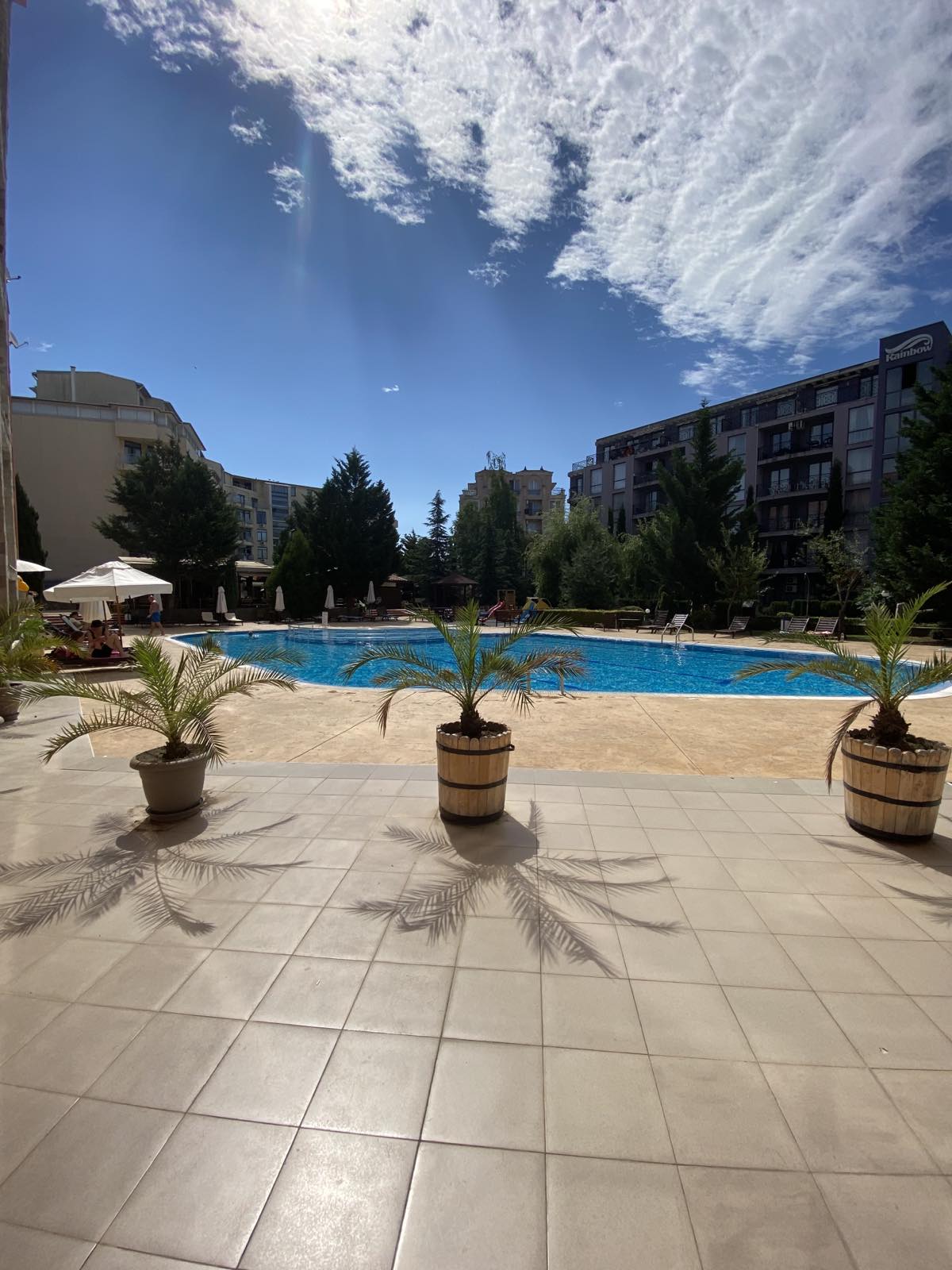 De studio is gelegen in een hotelcomplex. Er zijn 2 zwembaden. 1 zwembaar met jacuzzi en kinderbad. Onze klanten kunnen gebruik maken van het hotelrestaurant en de bar. Kinderen kunnen spelen in de speeltuin. Je zult verrast zijn door het grote terras met zitplaatsen en snelle toegang tot het zwembad. Het hotel is gelegen in een nieuw deel en voornamelijk een rustige omgeving. Je wordt niet gestoord door het nachtelijke lawaaierige leven. In de buurt van het hotel zijn er restaurants, bakker, kruidenier, omschakeling
