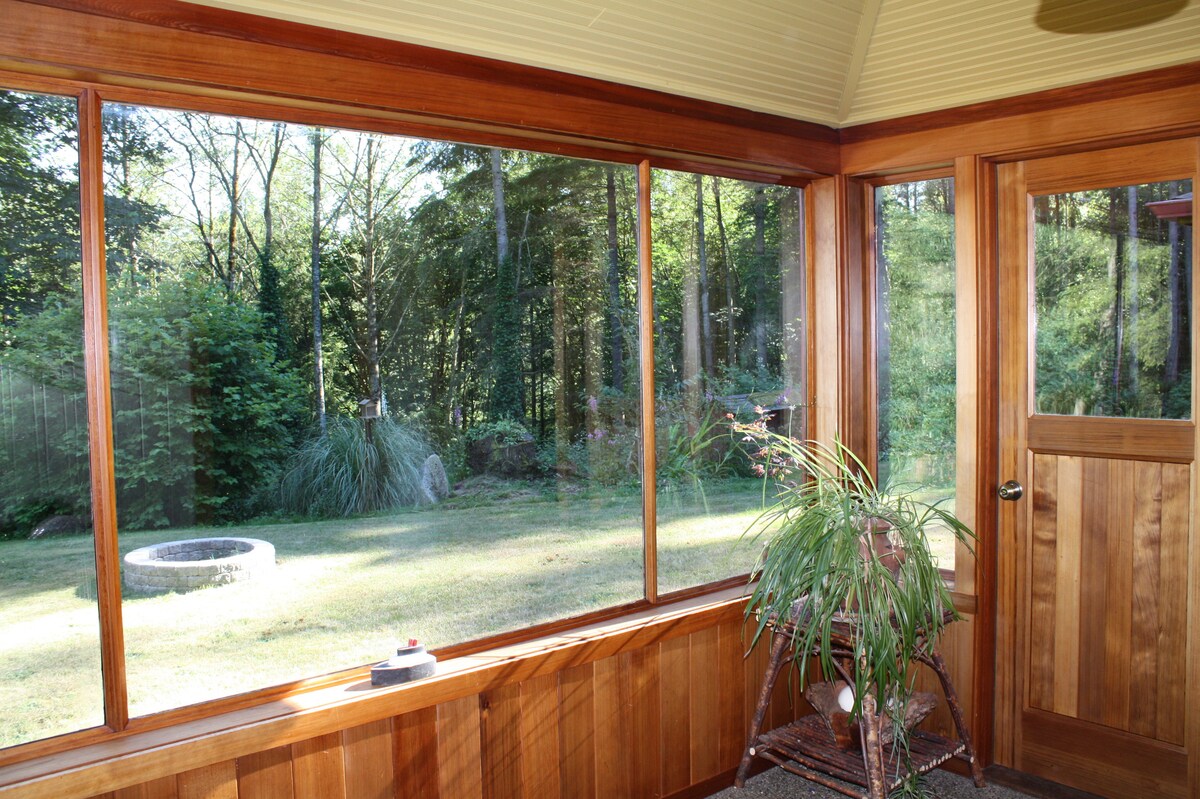 Ontsnap naar het gezellige huisje in het bos van grote bomen. Ecologisch gebouwd, een gezonde omgeving met alles wat je nodig hebt voor een comfortabel verblijf. Grote ramen geven je het gevoel dat je deel uitmaakt van het bos. Geniet van een bezoek aan de Noorse stad Poulsbo, maar Seattle is niet ver weg. Er zijn ook veel wandel- en wandelpaden, parken en stranden in de buurt, en het Olympic National Forest ligt op slechts een steenworp afstand. Ervaar de magie van de grote bomen!