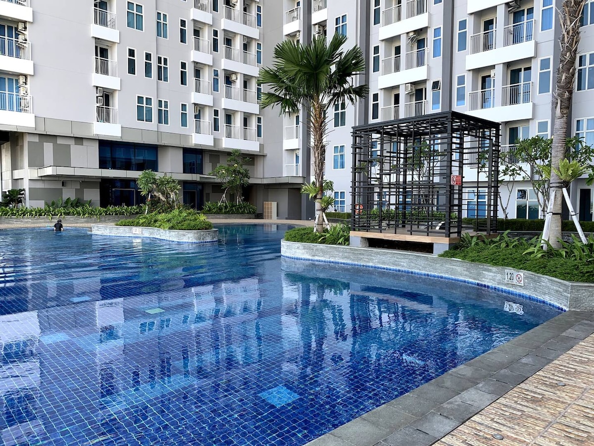 Onze studio is gelegen in het Amor Apartment direct boven Pakuwon City Mall. Geniet van deze rustige moderne studio met een prachtig uitzicht op het overloopzwembad. Ontworpen met een rustgevende grijze en zilveren sfeer, is het perfect voor vakanties, zakenreizen en korte of lange verblijven. Met geweldige beveiliging en een ruime keuze aan eetgelegenheden met diverse variaties, zal je verblijf in Surabaya nog aangenamer zijn.