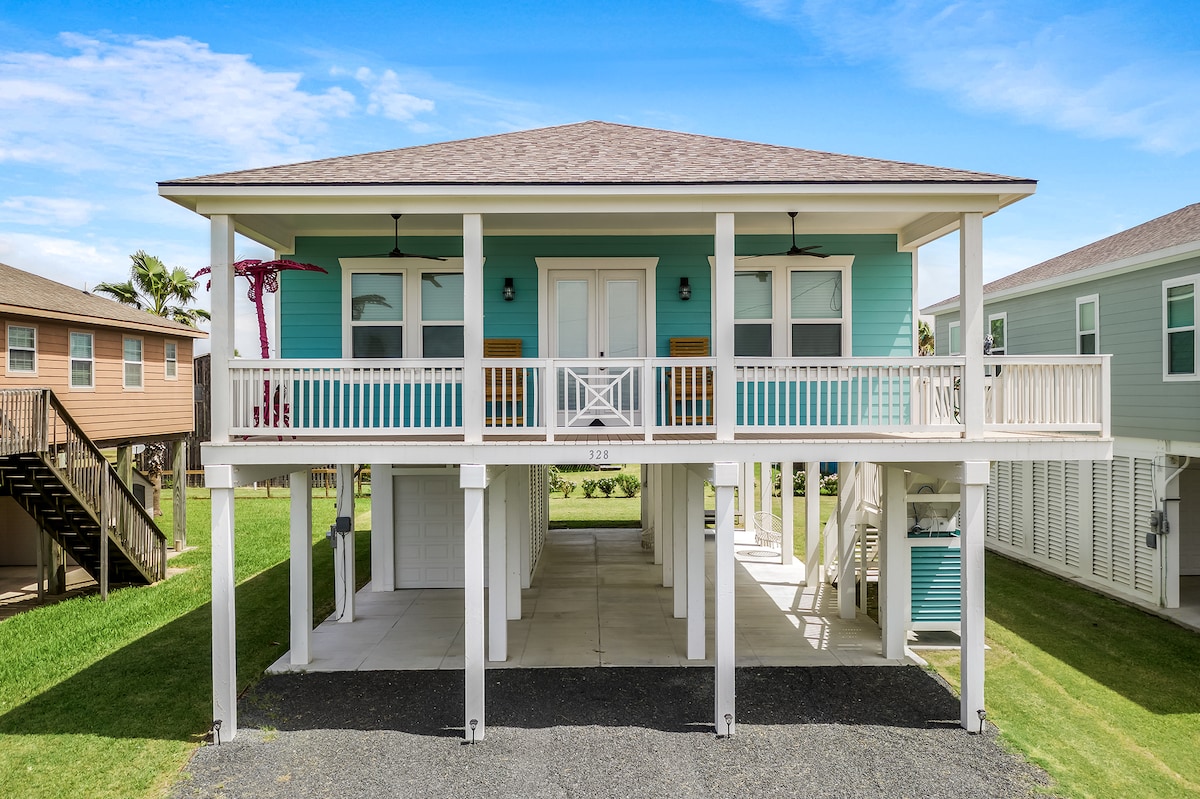 Beachfront property in Treasure Island neighborhood with ample outdoor space for you to enjoy. This home is located on the beach at San Luis pass with beach access and fishing just feet away. Enjoy the lower deck with shaded areas to relax or the upper deck with amazing views. You will be amazed at the constant ocean breeze and sounds of the waves crashing, creating the beach experience you are looking for. Just Beachy is pet friendly. There are additional charges and restrictions.