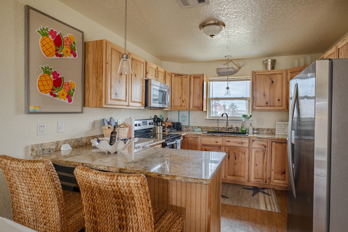 Laat je dagelijkse stress en zorgen achter je terwijl je op weg bent naar deze unieke vakantiewoning op de tweede rij met 3 slaapkamers en 2 badkamers op Surfside Beach! Deze gewilde woning in Texas biedt accommodaties voor 6 personen met eersteklas voorzieningen. Geniet van het rondhangen op het overdekte dek en luister naar de geluiden van de oceaan en het kijken naar de Sun Rise. Geniet van de zon, het zand en de branding op slechts een steenworp afstand of ga eropuit om de lokale restaurantscene te verkennen. Je idyllische strandretraite begint hier bij deze uiterst gelegen woning!