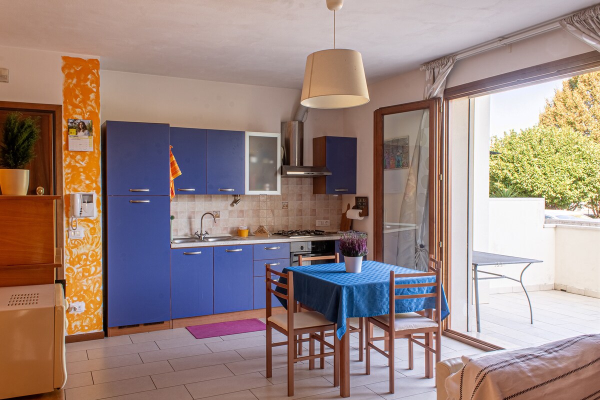 Mooi appartement met airconditioning, wasmachine en wat buitenruimte. 100 meter van een bushalte en een winkel met verse groenten en fruit en alledaagse boodschappen. Als je geïnteresseerd bent in lokaal eten en wijn, dan kunnen wij u wat advies geven over winkels en boerderijen in de buurt. Grotere supermarkt open 7/7 op minder dan 10 minuten afstand (te voet). Het kasteel van de stad (op de Prosecco Hills) ligt op 20 minuten lopen. We wonen in de buurt, we spreken Italiaans, maar zonen helpen ons buitenlandse gasten te verwelkomen.