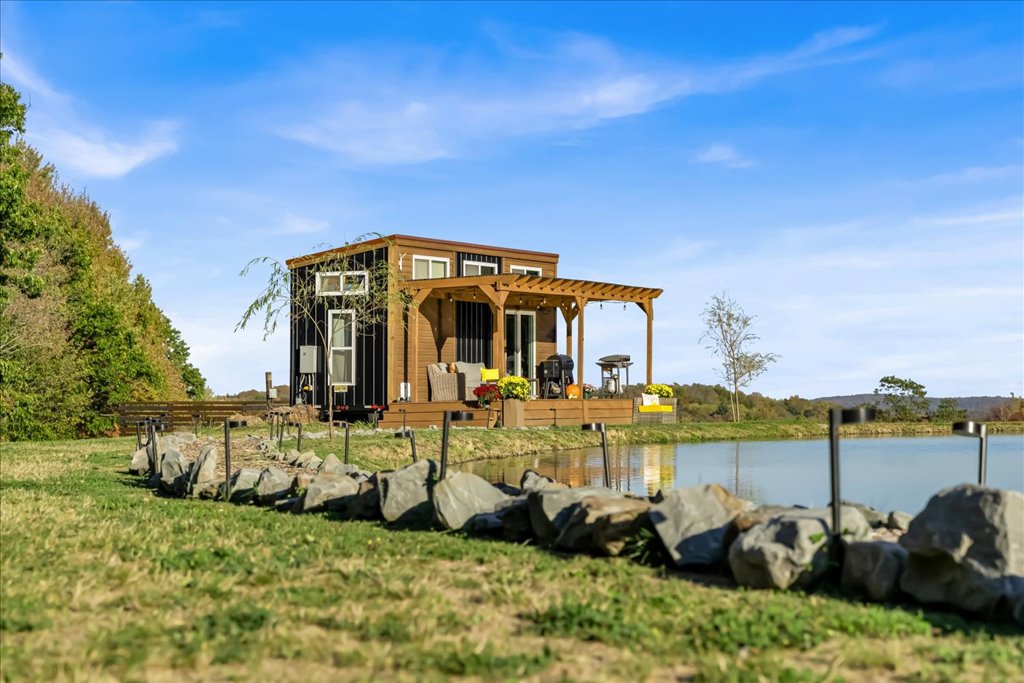 Tiny House op een Tiny Lake Porch aan de rand van het water