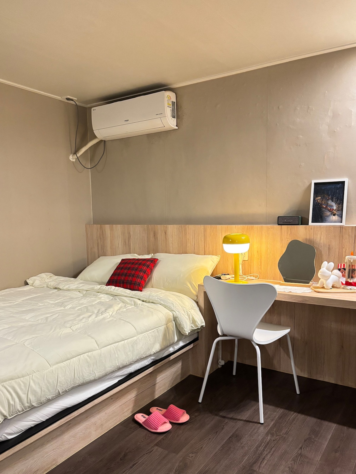 Dit is een warme accommodatie ingericht met de gevoeligheid van Haenggung-dong North Cafe. De leeszaal en slaapkamer zijn gescheiden, dus het is goed voor koppels, staycations en werkruimtes. Aan het einde van het jaar kun je de emotionele verlichting aandoen en een ontspannen dag doorbrengen in een rustige sfeer. Gratis parkeren is mogelijk en je kunt naar Haenggung Square en Haengridan-gil lopen. 🏯 Het ligt dicht bij de belangrijkste toeristische attracties, zoals Suwon Tongdak Street, Hwaseong en Paldalmun, en de omliggende voorzieningen liggen op loopafstand, waardoor het de beste locatie is om te verblijven tijdens je reis. ❄️Speciale aanbieding voor december en eindejaarsfeesten ・ Speciale prijs is van toepassing op doordeweekse dagen ・ Creëer een eindejaarsfeer met emotionele verlichting + fotozones ・ Klein cadeau aangeboden bij het boeken voor Kerstmis/eindejaar Dit is een ruime en emotionele accommodatie waar je comfortabel kunt verblijven met een gezin van vier personen of vrienden. Naast 1 slaapkamer is er een aparte 'geneeskamer', zodat je het queensize opvouwbare matras kunt uitvouwen en comfortabel kunt slapen voor 2 personen. 📍 Locatie- en buurtinformatie • Haengridan-gil & Haenggung → 5 minuten lopen • Haenggung-plein → 2 minuten lopen • Tongdak Street → 3 minuten lopen