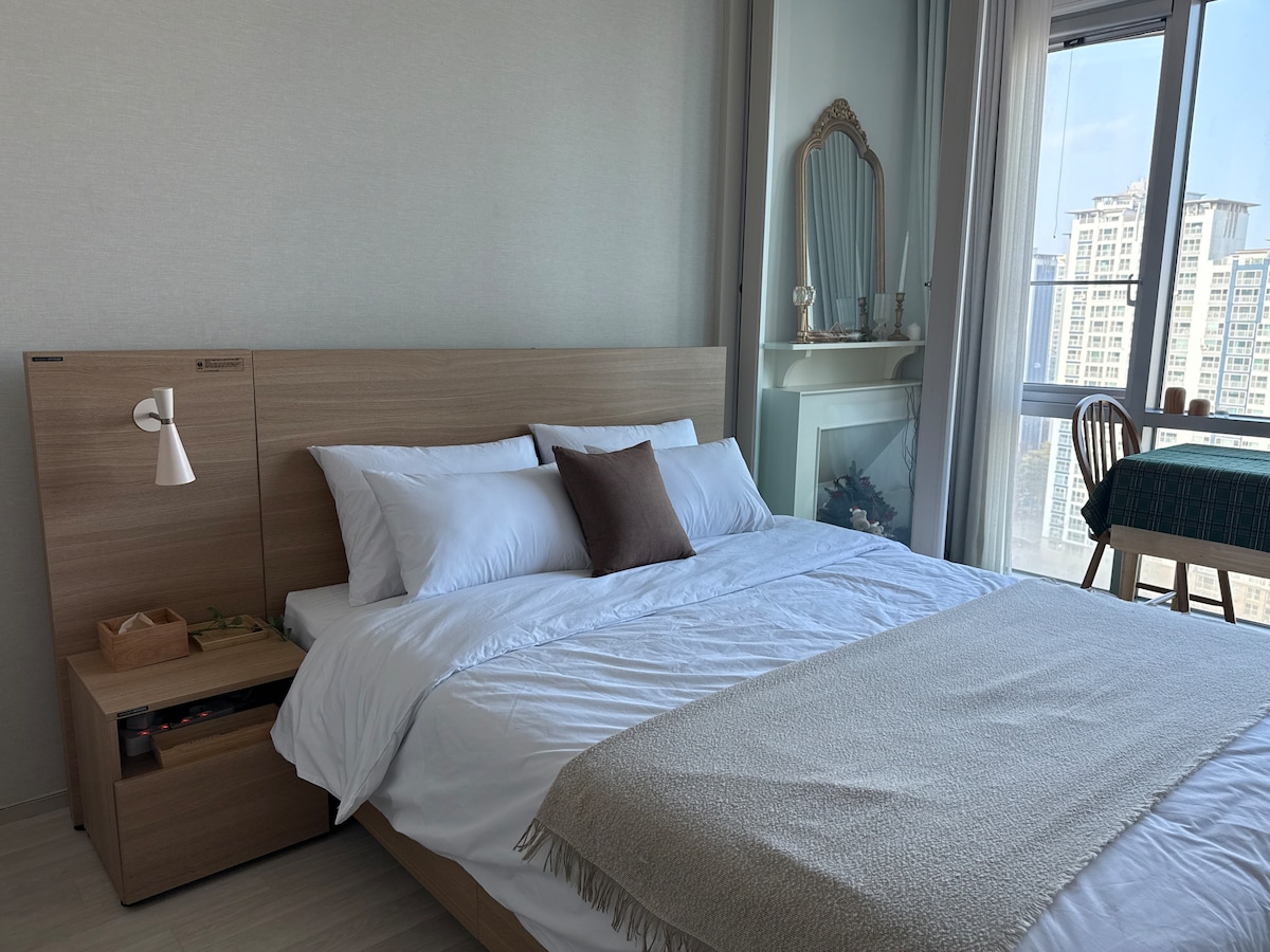 Gwanggyo Jungang Station/Lake Park Aangrenzend Warenhuis Galleria, Lotte Outlet op 1 minuut lopen Het is een locatie met diverse voorzieningen zoals Starbucks, Subway, CCV en Kyobo Bookstore in het gebouw. Er gaat een bus naar Starfield direct voor het huis. Ik ben geïnteresseerd in het interieur, dus beddengoed, meubels, Ik geef niet om de lichten, de planten, de wijnglazen. Beddengoed: 3 dekbedden 3 matten 6 kussens 1 queensize topper voor vloerbank: Jacobo 3-persoons stoffenbank Bedden: Ginus Metris IKEA Malm Frame Tv: 55-inch Serif smart-tv Apparaten: ventilator, stofzuiger, haardroger, Nespresso rijstkoker elektrisch pan krultang, stijltang, luchtbevochtiger, ontvochtiger Voorzieningen: wegwerp tandenborstel/tandpasta Foam Cleansing Hand Soap Body Cleanser Shampoo Behandeling Body Lotion Hand Cream Servies: Pot koekenpan Lepel vork Kinderlepel vork Transitional servies Wijnglazen Mokken Diverse kruiden Mineraalwater Overig: Boeken/Tijdschriften/EHBO-bordspellen Langetermijnverblijven zijn welkom. 10% korting voor zeven dagen of meer en 20% korting voor 8 weken of meer.